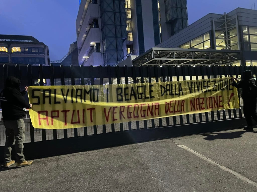 Giovedì 27 gennaio, nel tardo pomeriggio, Militanti della sinergia animalista si sono recati davanti alle sede di Aptuit a Verona, per chiedere ancora una volta la liberazione dei Beagle rinchiusi nei laboratori della multinazionale Americana da oltre 4 mesi.