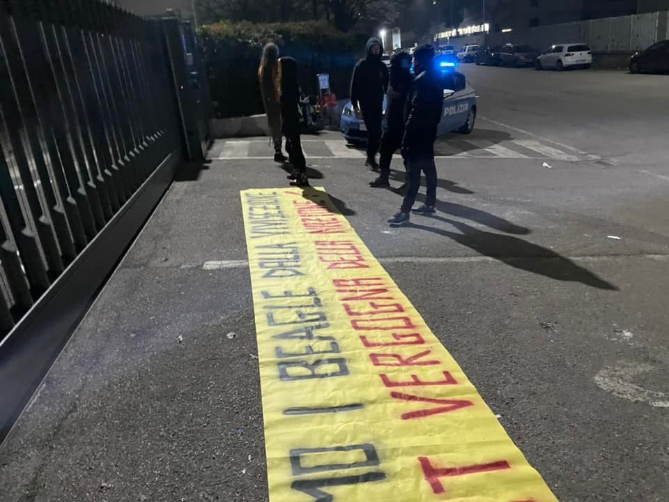 Sul posto sono arrivate una volante della Polizia e Agenti della DIGOS. I Militanti quindi, sono stati identificati.