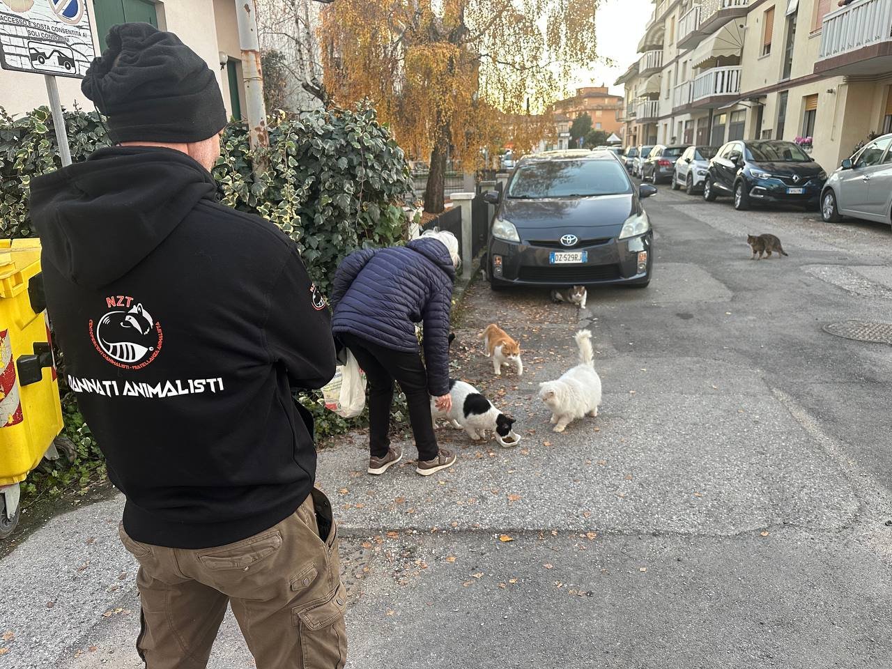 Ogni volta che la signora dal cuore d’oro portava il cibo ai randagi, veniva disturbata e minacciata da alcuni residenti. I nostri Militanti si sono presentati insieme a lei, nessuno ha fiatato, anzi, un signore si è proposto per aiutarla.