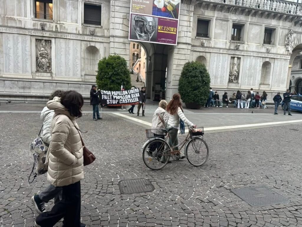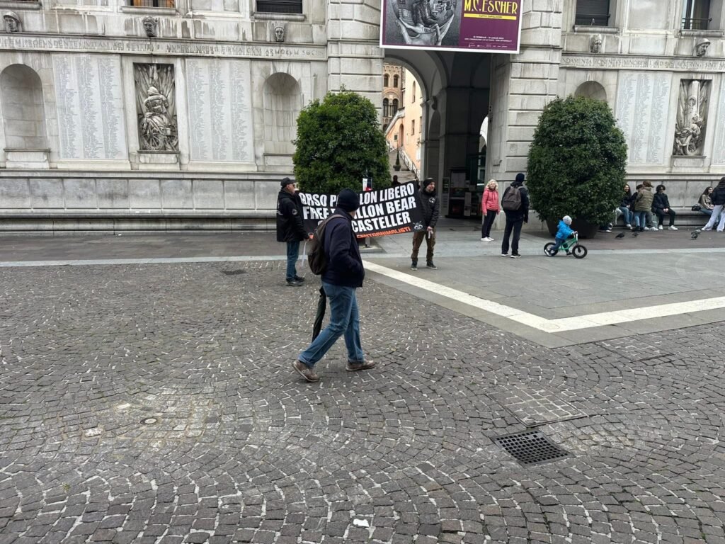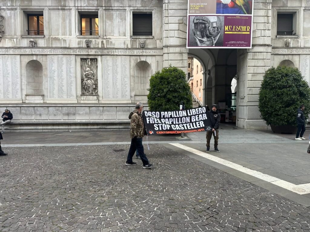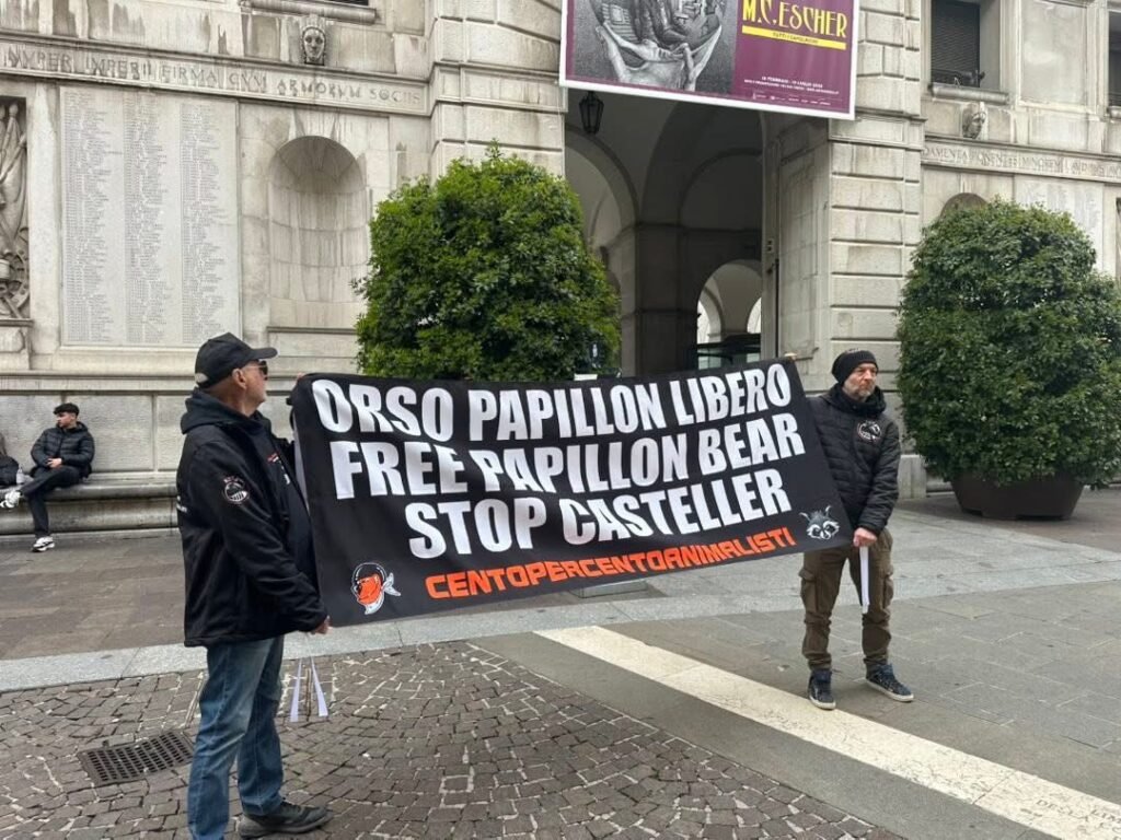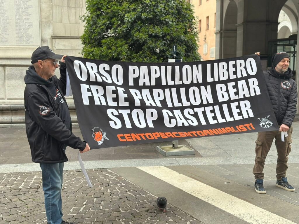 Giovedì 26 marzo, nel tardo pomeriggio, attivisti di CENTOPERCENTOANIMALISTI  hanno esposto uno striscione  nel centro di Padova, per ricordare la vicenda dell’Orso Papillon, recluso da  anni nel centro faunistico del Casteller (Trento).