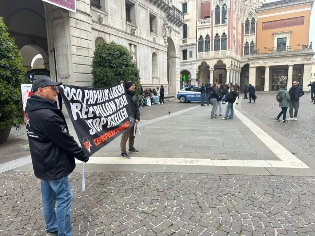 I nostri attivisti hanno portato lo striscione davanti al Bò (centro della vita culturale di Padova) e davanti al Municipio, riscuotendo l’interesse e l’approvazione  dei passanti, italiani e stranieri.
