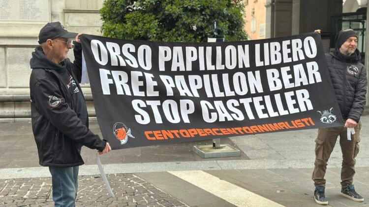 Giovedì 26 marzo, nel tardo pomeriggio, attivisti di CENTOPERCENTOANIMALISTI  hanno esposto uno striscione  nel centro di Padova, per ricordare la vicenda dell’Orso Papillon, recluso da  anni nel centro faunistico del Casteller (Trento).