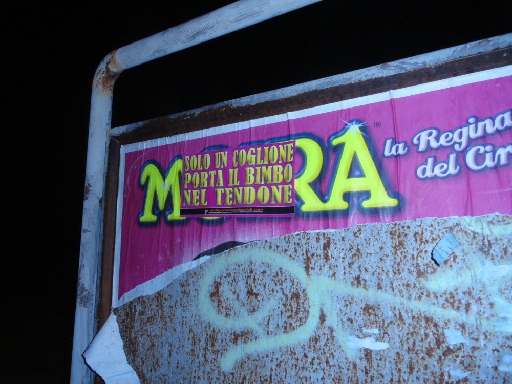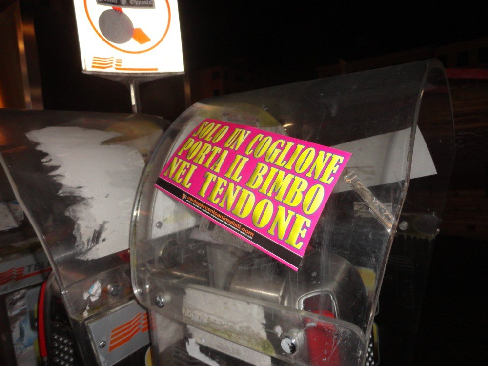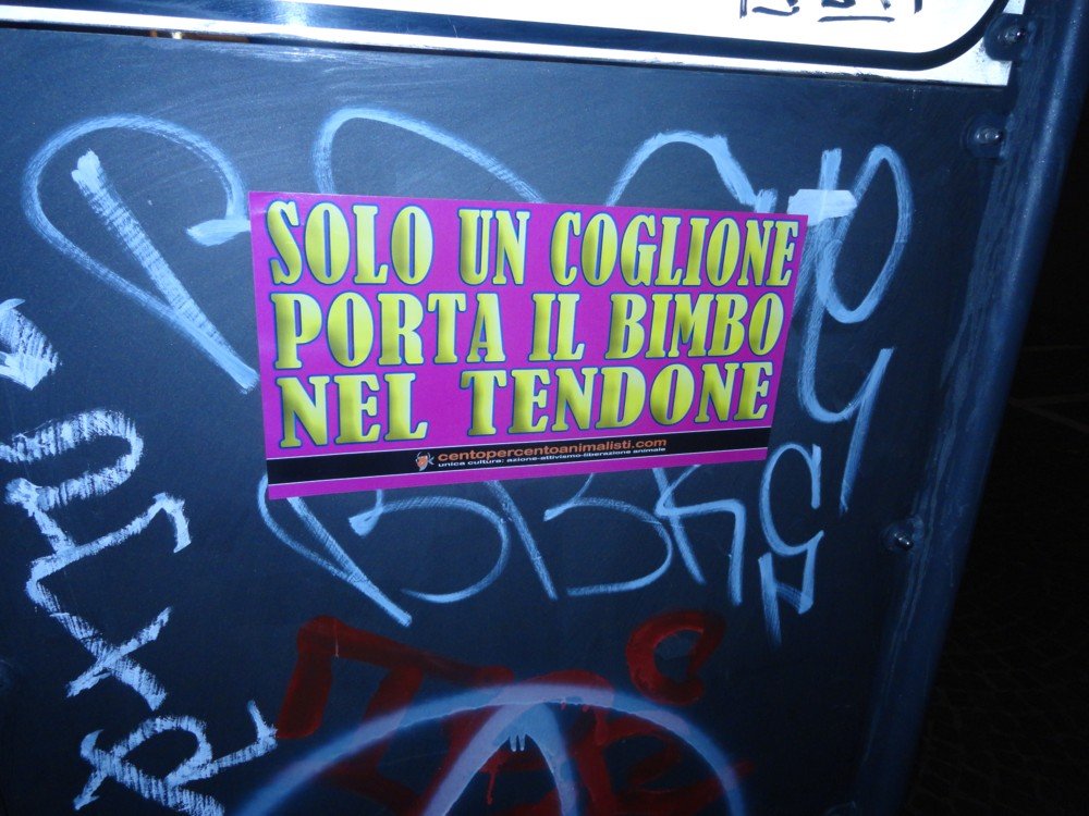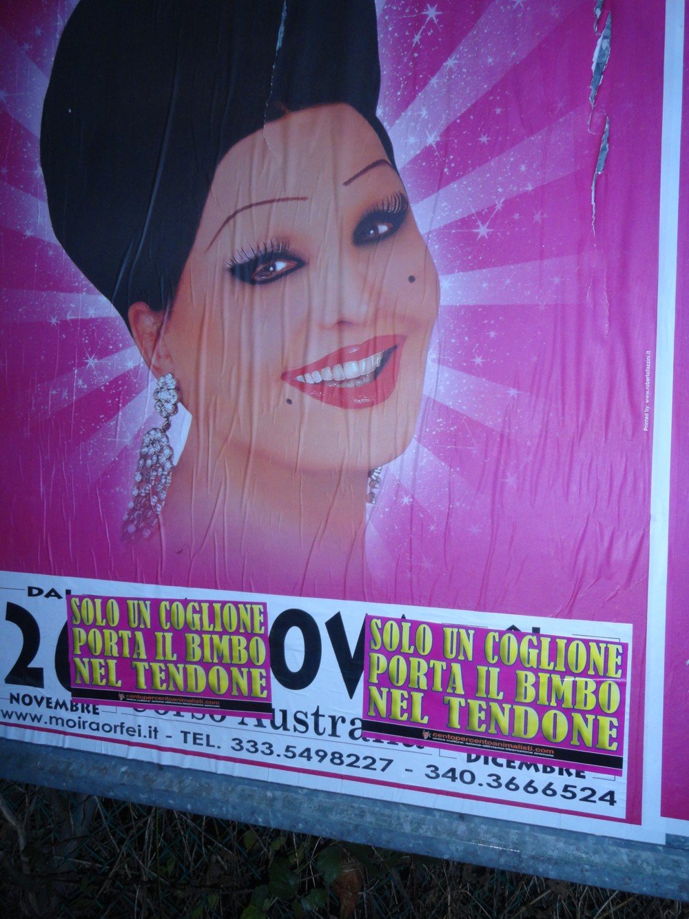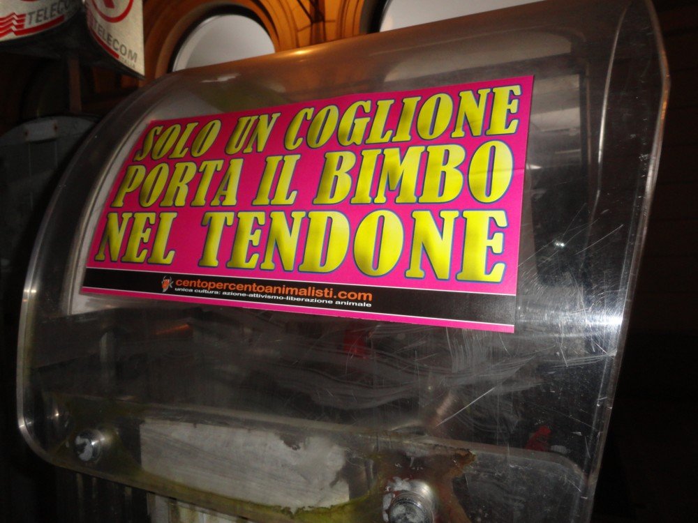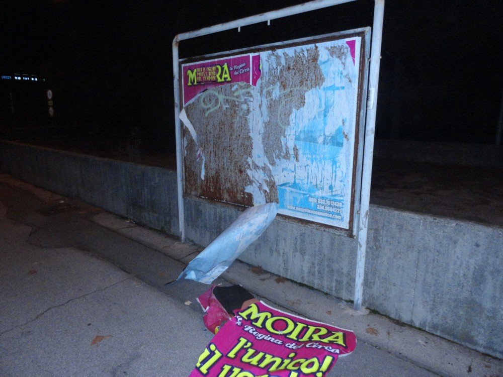 Nella notte tra il 9 e il 10 dicembre, militanti di CENTOPERCENTOANIMALISTI hanno ancora una volta mostrato alla Moira quanto sia sgradita la sua presenza a Padova oscurando con locandine adesive ironiche i suoi (pochi) manifesti rimasti intatti e “punendo” i negozianti che hanno sponsorizzato il suo spettacolo nelle vetrine, anche in quest’ultimo caso, pochi per fortuna, a dimostrazione di quanto l’azione di Centopercentoanimalisti sia stata efficace in città.