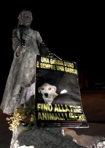 appeso un manifesto sulla statua del Gesù a Cusignana – Centopercentoanimalisti non molla!
