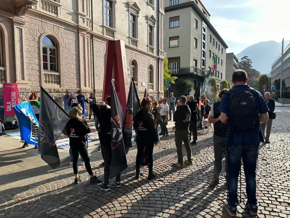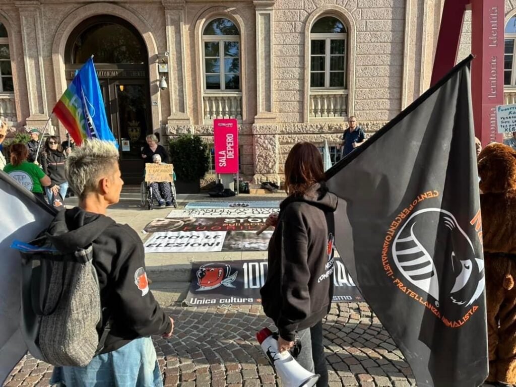 Giovedì 12 ottobre, una quarantina di Animalisti si sono dati appuntamento davanti alla Provincia Autonoma di Trento per protestare vs le scellerate ordinanza della Giunta Fugatti. Al Presidio organizzato da Centopercentoanimalisti, hanno partecipato gli Animalisti Italiani, il Partito Animalista Europeo, l’Associazione Bearsandothers ODV e liberi cittadini.