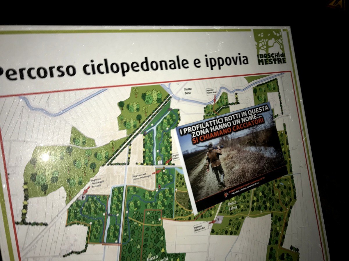 avvertimenti ai cacciatori prepotenti a Mogliano (TV) e Bosco di Mestre