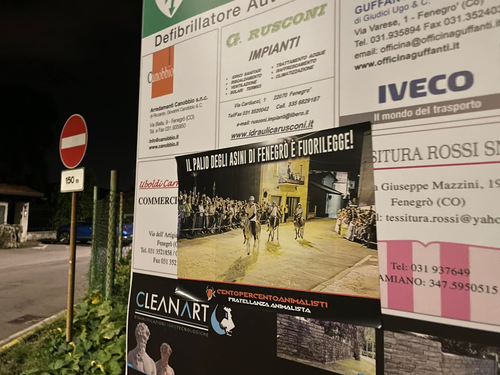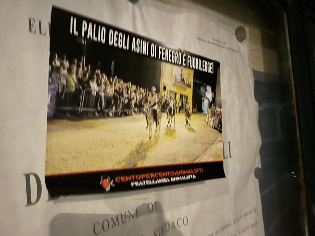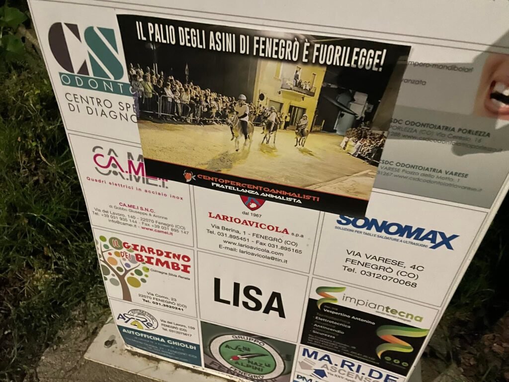 Ma non è tutto: dalle immagini trovate nel web, compresa quella stampata sulla locandina affissa nel paese dai nostri Attivisti, molto probabilmente il palio di Fenegrò è anche fuorilegge.