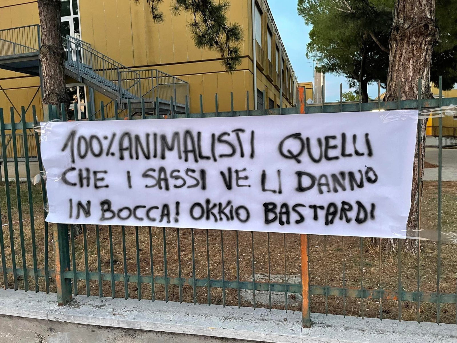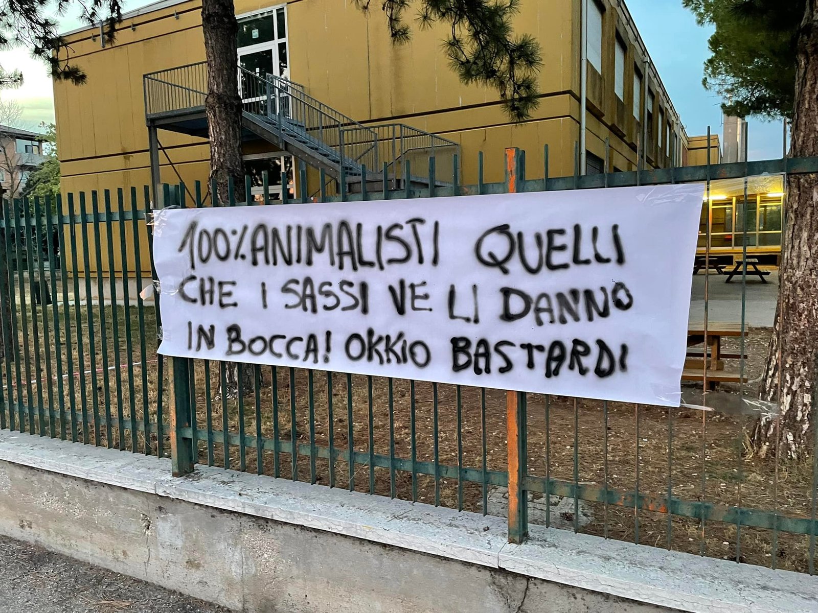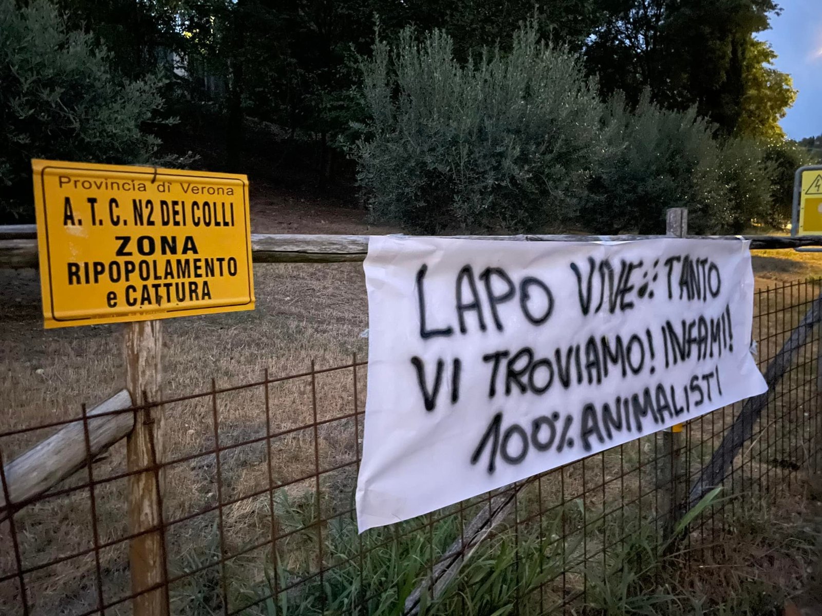 Esiste una legge che punisce questi infami, ma non viene mai applicata. Ecco perché gli striscioni che i nostri Militanti hanno affisso a Verona e Grezzana, nella serata di giovedì 11 agosto sono diretti e molto duri. Se la legge latita, gli Animalisti si mobilitano con ogni mezzo. Delinquenti che, prima di tutto devono essere individuati, dopo giudicati e condannati come prevede la legge, in caso contrario, non devono più dormire di notte.