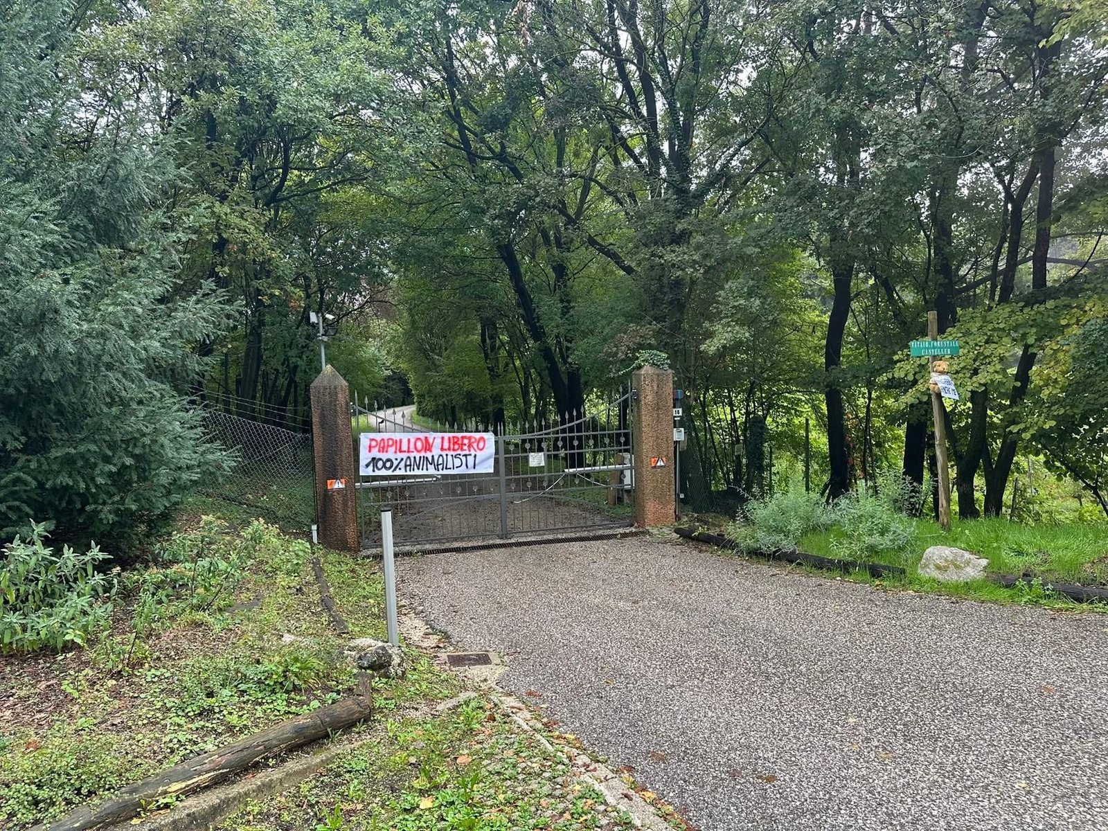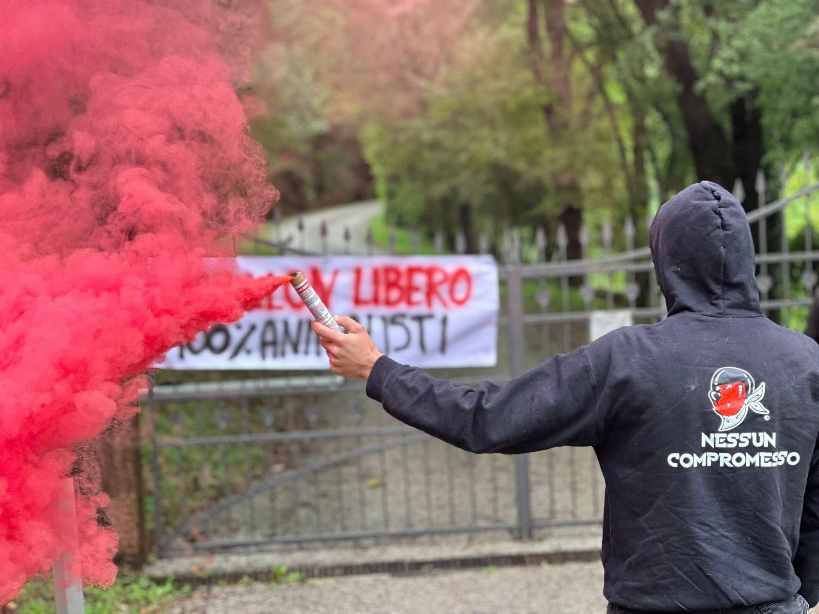 Inoltre, hanno affisso uno striscione che invoca la liberazione di Papillon e acceso dei fumogeni (ecologici), per far sentire a Papillon la nostra presenza. Non lo lasceremo solo!