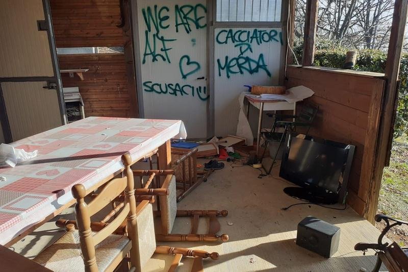 «Hanno imbrattato con scritte i muri, liberato 20 sasselli da richiamo e 15 cesene, condannandoli così a morte certa non essendo gli uccelli avvezzi a trovare il cibo. Poi hanno distrutto ogni cosa: televisori, sanitari dei bagni, il boiler, la cucina. Hanno forzato e rubato anche tre vecchi fucili sottratti da un armadio blindato che hanno distrutto. Poi hanno colpito con un piccone i lamierati del tetto e divelto gli arredi, spargendo benzina ovunque».