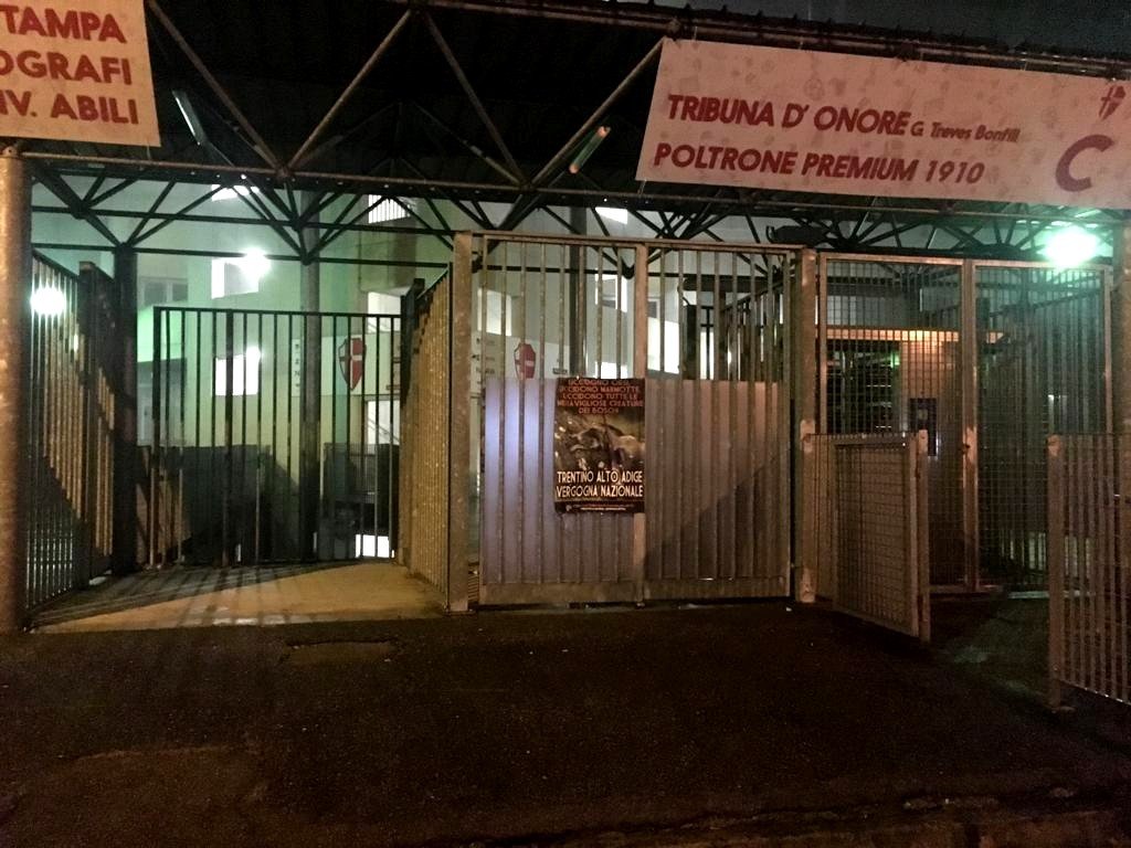 Azione allo stadio Euganeo (PD) vs il Sud Tirol – basta stragi degli Animali dei boschi