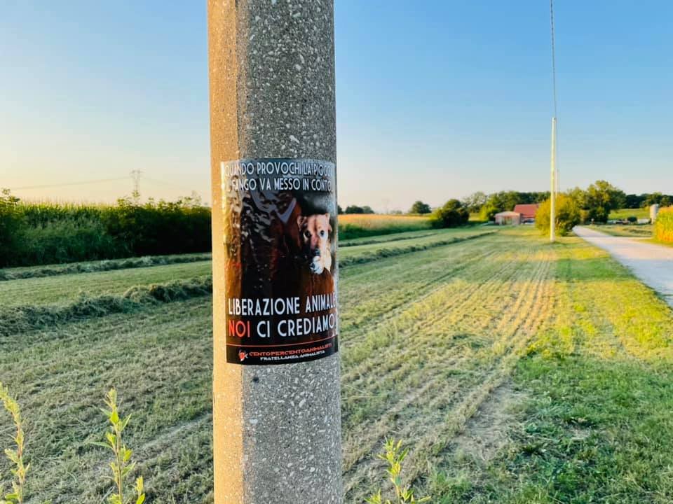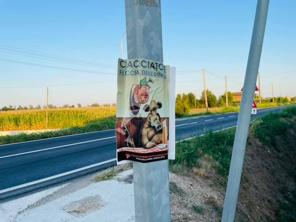 Militanti di Centopercentoanimalisti, alle 19.30 di mercoledì 11 agosto, si sono recati presso l’abitazione / allevamento del sospettato a Ronco all’Adige (Verona) ed hanno affisso manifesti provocatori in zona contro la caccia e di monito, oltre che ad urlare contro il cacciatore alcune parole invitandolo ad uscire di casa. Ma il soggetto ha declinato l’invito e non si è fatto vedere.