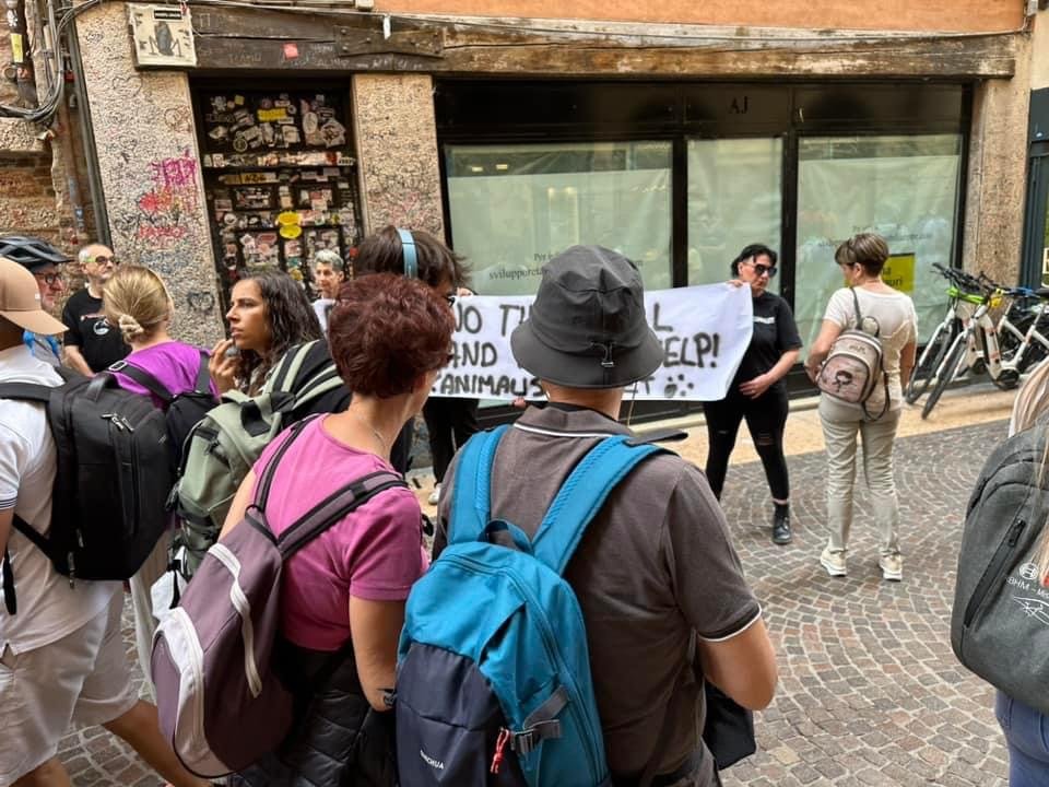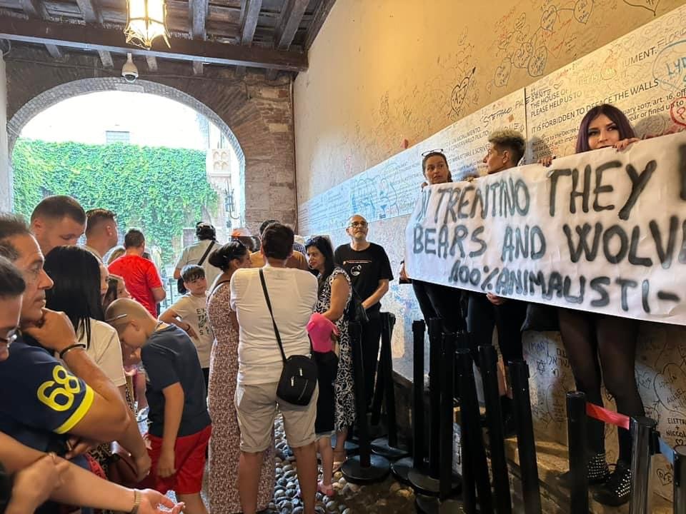 Domenica 2 giugno alcuno militanti del Movimento Centopercentoanimalisti si sono recati in via Cappello, davanti ala Casa di Giulietta, con uno striscione in lingua inglese per denunciare la politica distruttiva delle giunta trentina, contro gli Animali Liberi, in primo luogo Orsi e Lupi da tempo nel mirino dei cacciatori e del presidente Fugatti.