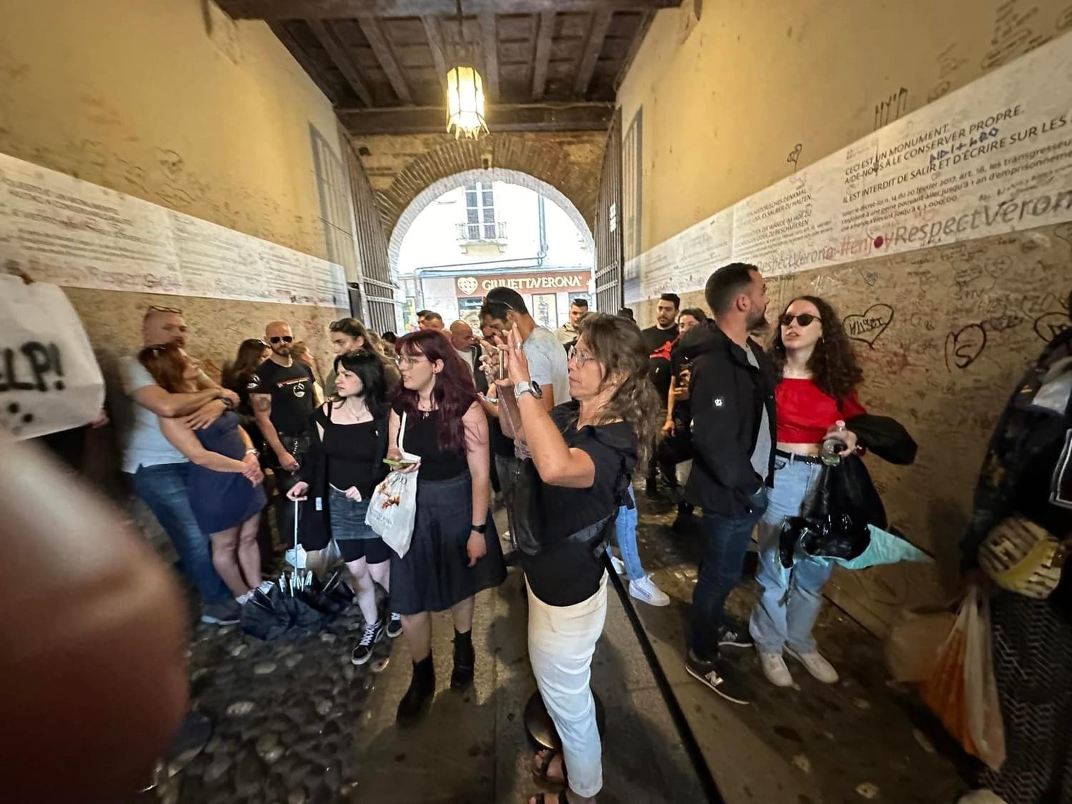 L’azione è stata accolta con approvazione e simpatia dai molti presenti, turisti e veronesi.