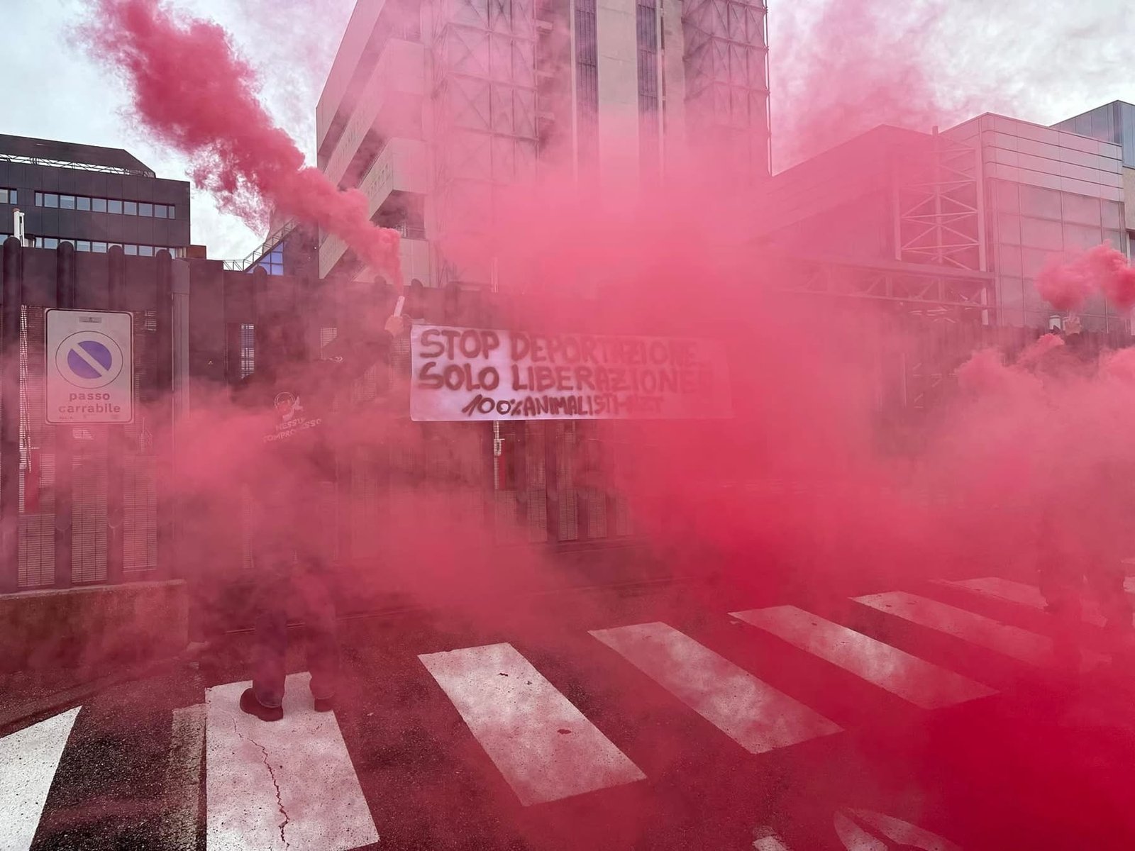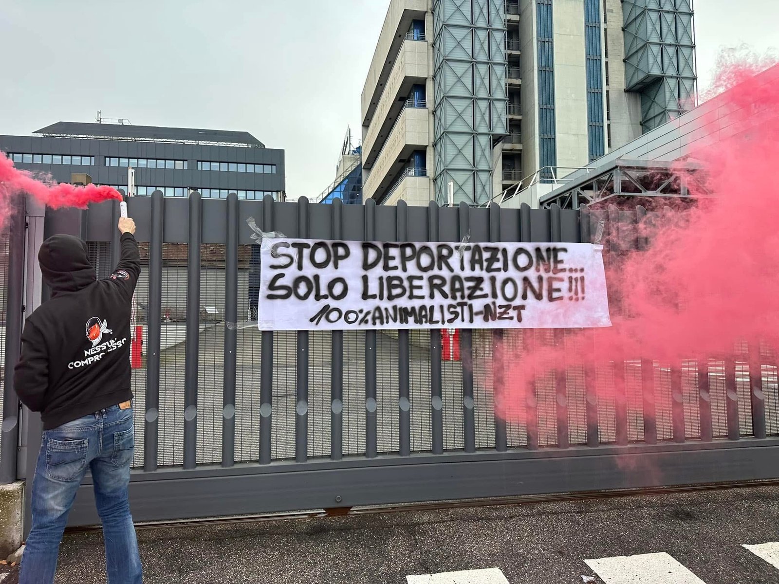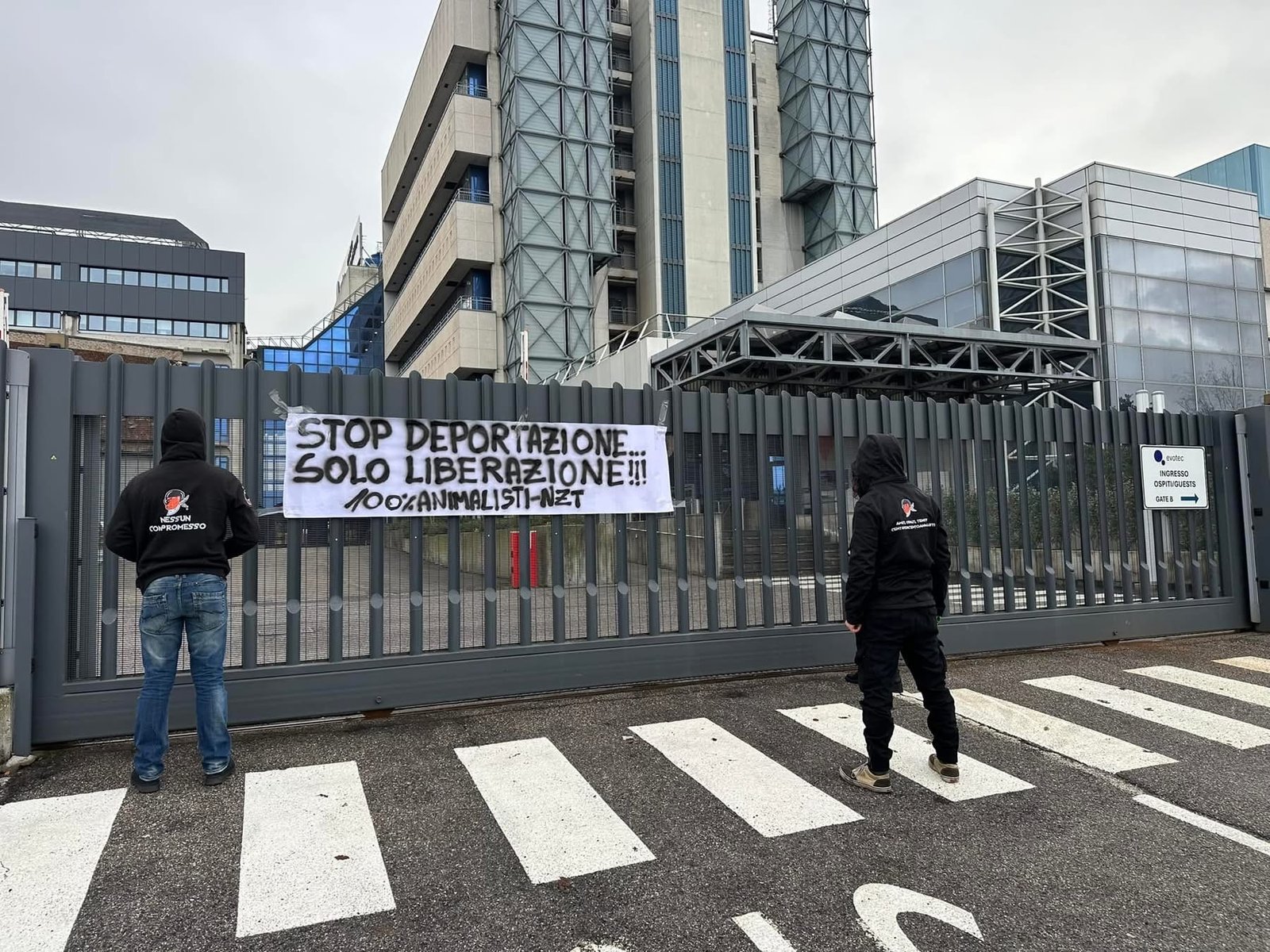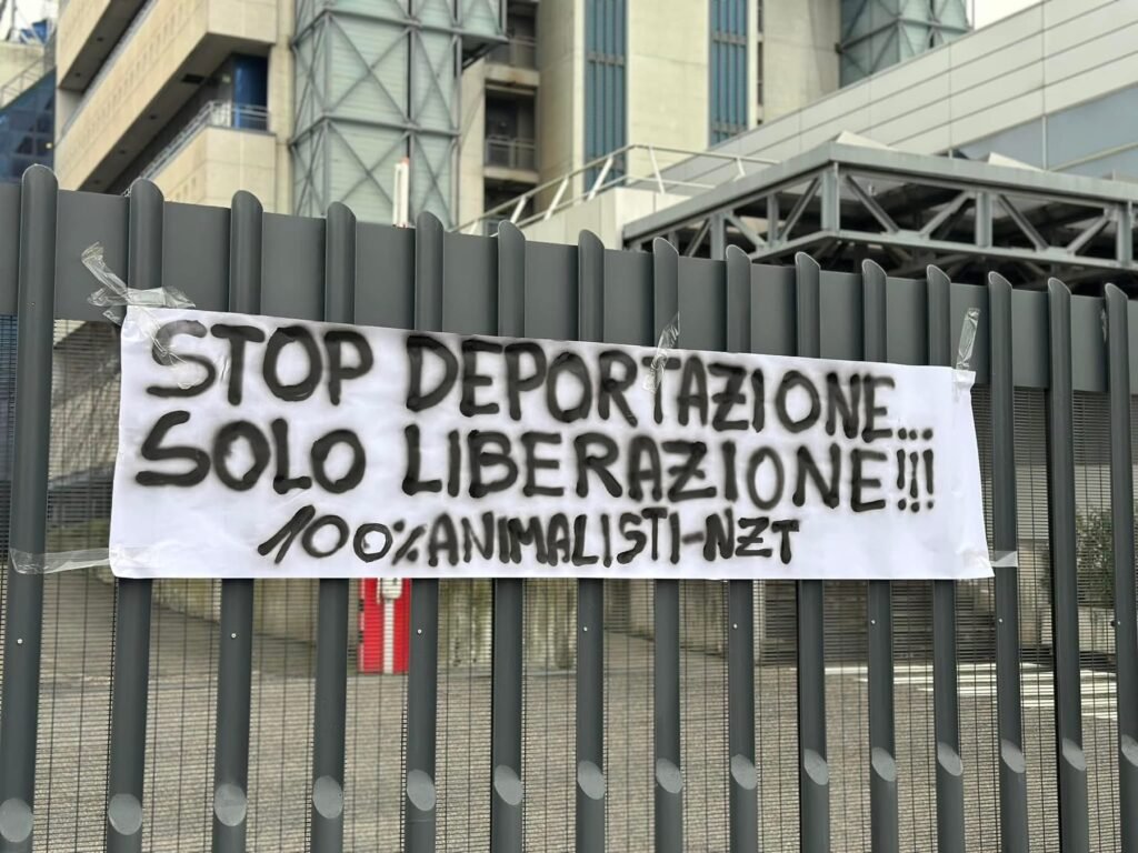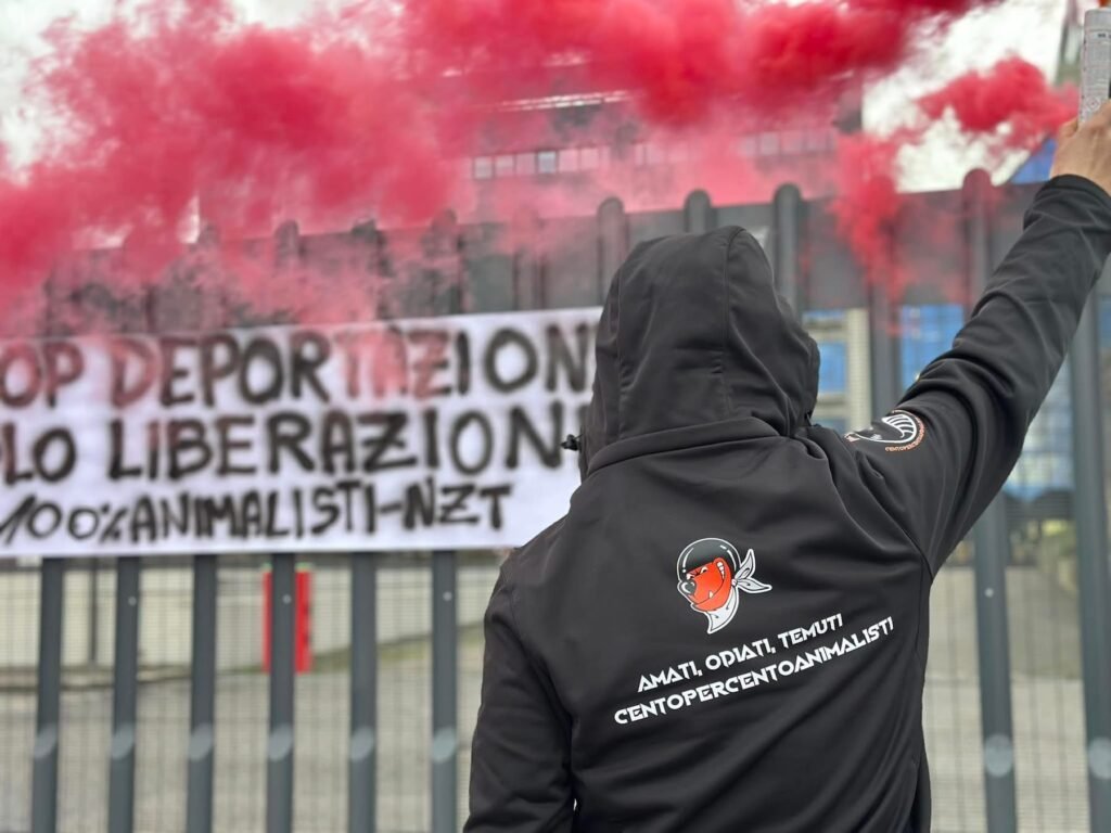 Domenica 26 gennaio, nel primo pomeriggio, militanti di CENTOPERCENTOANIMALISTI si sono recati in via Fleming a Verona davanti alla sede Aptuit ed hanno affisso uno striscione: “STOP DEPORTAZIONE, SOLO LIBERAZIONE!” Sono stati accesi dei fumogeni rossi per ricordare il sangue innocente di tutte le vittime della vivisezione.