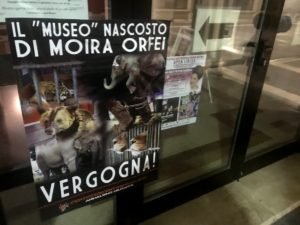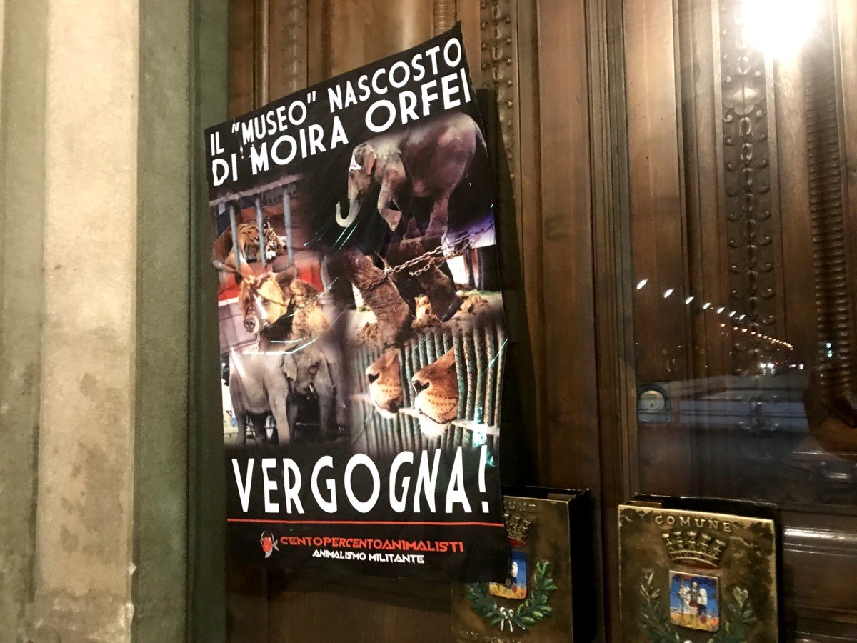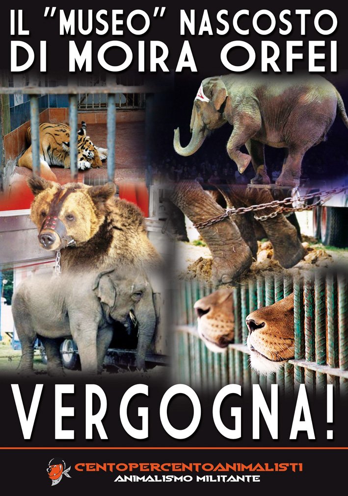 All’inaugurazione della mostra era presente il sindaco di S. Donà e alcuni assessori. Ci chiediamo se non abbiano nessuno o niente di migliore da celebrare. CENTOPERCENTOANIMALISTI ha ricordato Moira Orfei e tutti i circensi che l’unico museo della “regina” è quello “nascosto”. Nella notte tra i 16 e 17 gennaio, Militanti del Movimento CENTOPERCENTOANIMALISTI hanno affisso sulle vetrate del “museo” e del Municipio di San Donà di Piave manifesti con i poveri Animali tuttora prigionieri nelle galere circensi.
