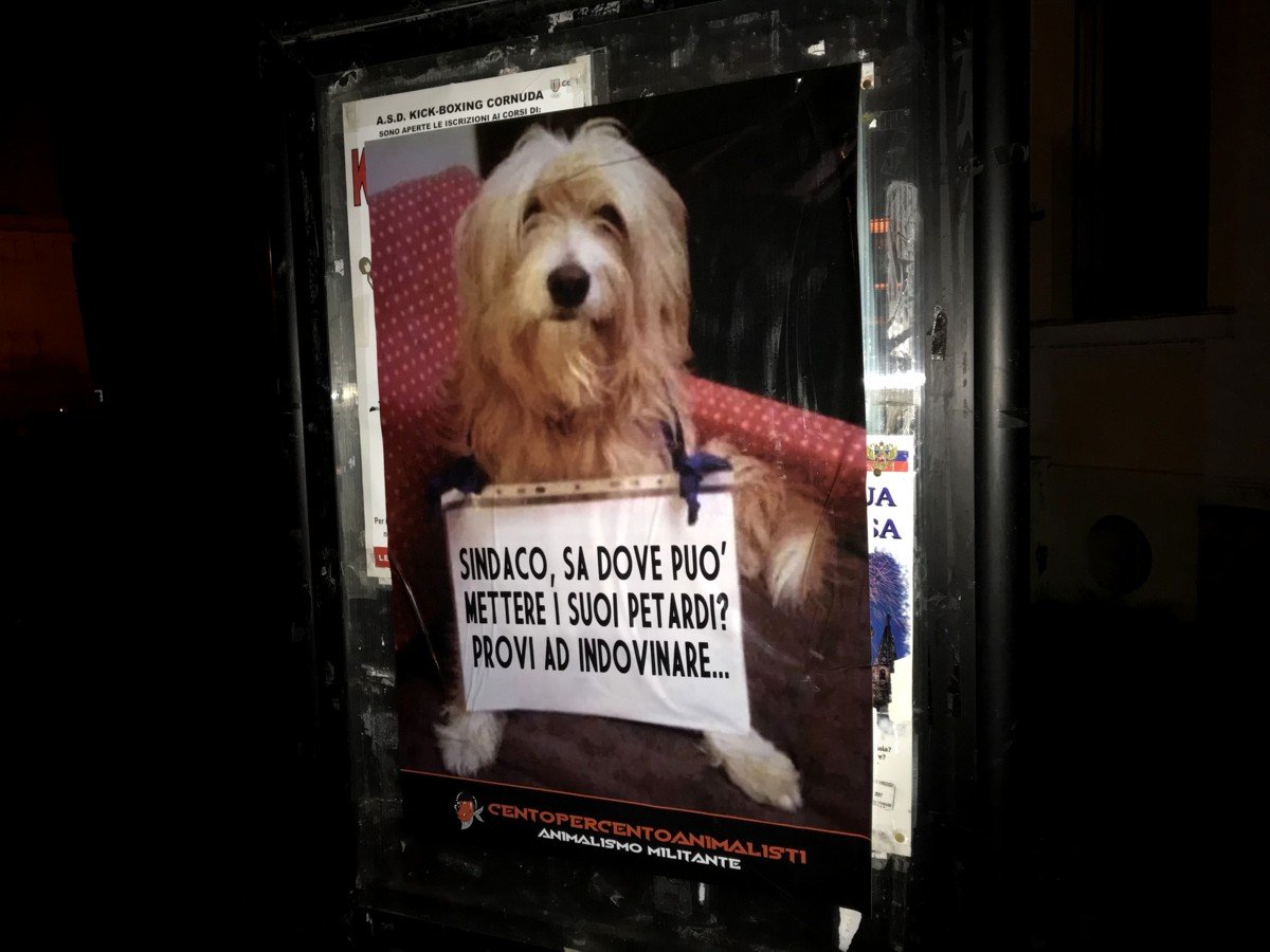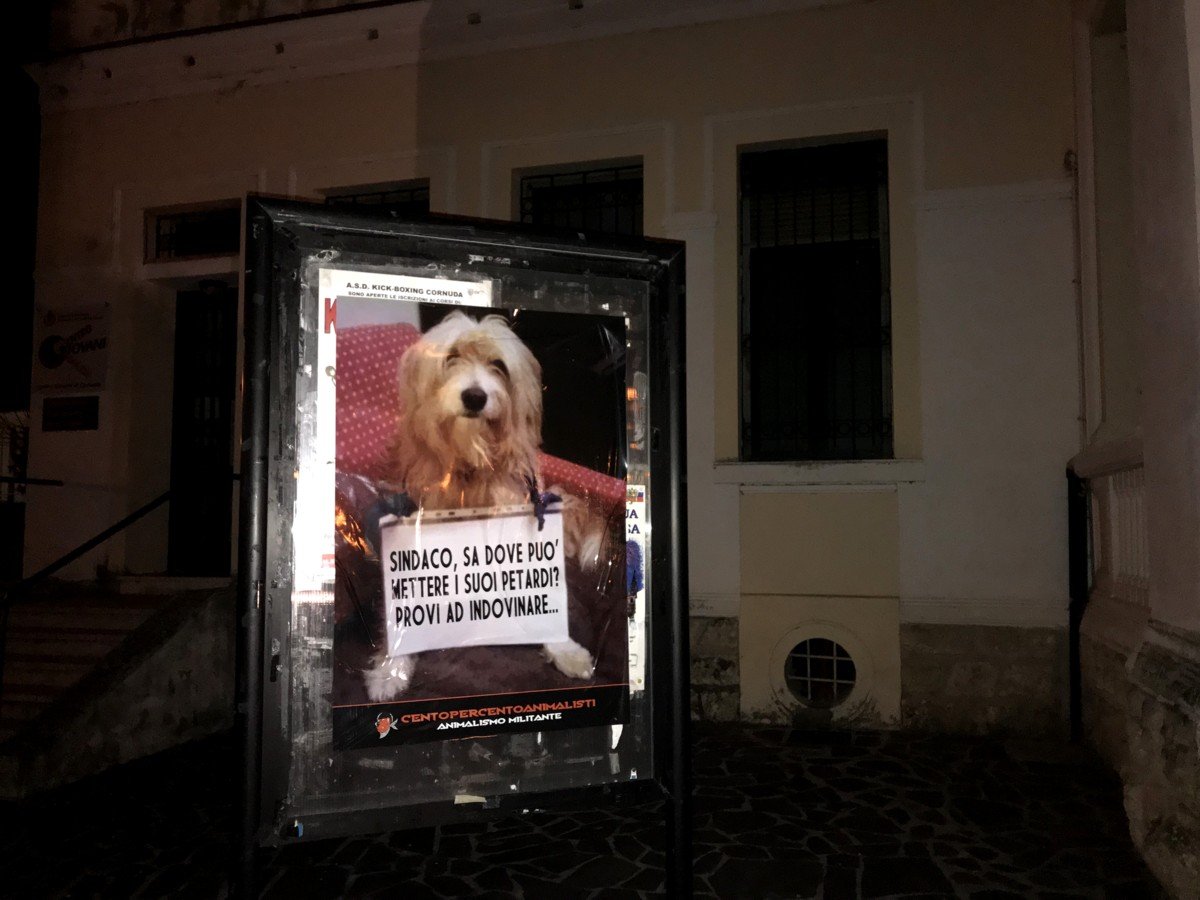Azione vs il sindaco che ama i botti – affissi manifesti al municipio di Cornuda (TV)