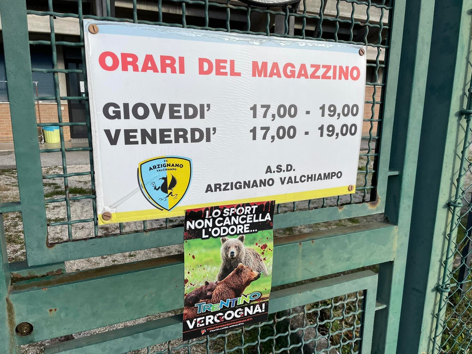 Domenica 5 dicembre, il Levico Terme giocherà in casa della capolista Arzignano (Vicenza). I nostri Militanti quindi, lunedì pomeriggio 29 novembre, hanno affisso sui cancelli dello stadio “dal Molin” manifesti adesivi, per ricordare le nefandezze compiute in Trentino, contro Orsi, Cervi, e di recente anche contro i poveri Cormorani.