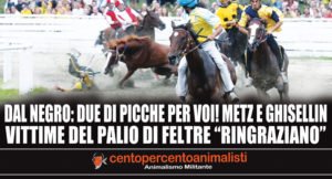 L’antica manifattura di carte da gioco “Teodomiro Dal Negro” di Treviso ha avuto un’idea infelice: realizzare un mazzo di carte dedicato al palio di Feltre. Un gesto di servilismo che non tiene conto di quel che è un “palio”: Animali costretti a correre in condizioni proibitive, stressati, esposti a rischi anche mortali, come è avvenuto e avviene troppo spesso.
