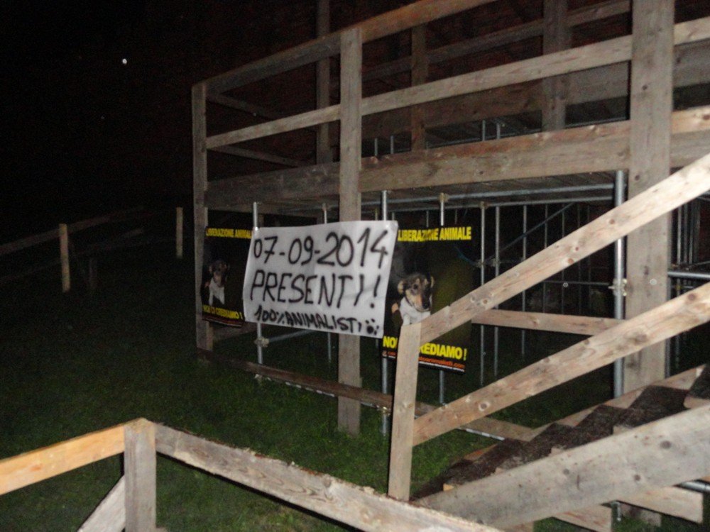 Nella notte tra il 3 e il 4 settembre, militanti di CENTOPERCENTOANIMALISTI si sono introdotti nel vallo e hanno affisso manifesti di liberazione animale e uno striscione diretto agli organizzatori…