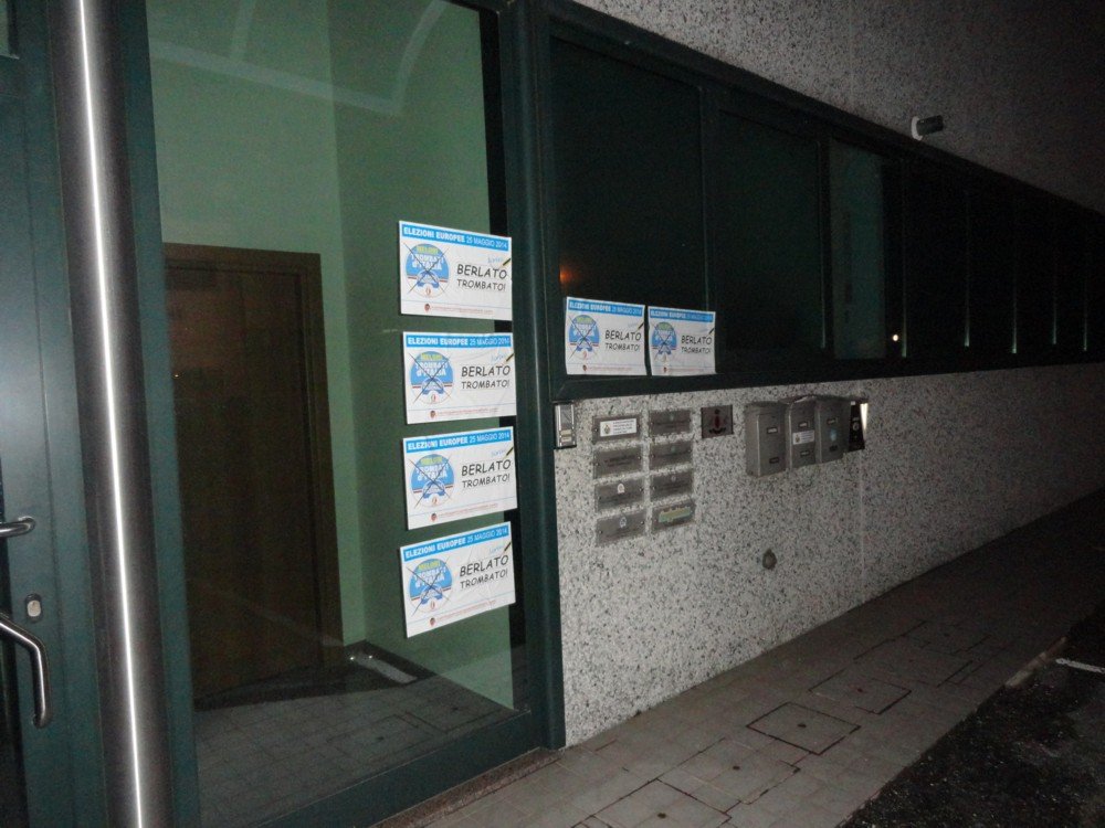 Intanto, per ricordare il fallimento suo e della lista di perdenti che lo aveva accolto, nella notte tra il 27 e il 28 maggio i nostri militanti hanno affisso numerose locandine di scherno dedicate ai “trombati d’Italia”, sulle vetrate d’ingresso della sede Confavi di Thiene (Vicenza) e hanno “infierito” sempre con le locandine a lui dedicate, su alcuni cartelloni elettorali che lo vedevano protagonista.