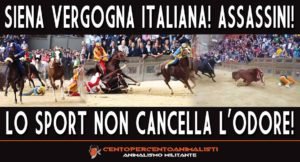 Il palio di Siena è una vergogna per tutta l’Italia, è una manifestazione di violenza e inciviltà alla pari della corrida Spagnola e che deve essere abolita.
