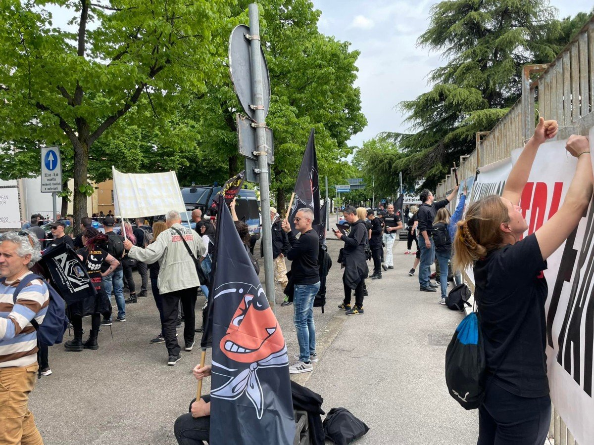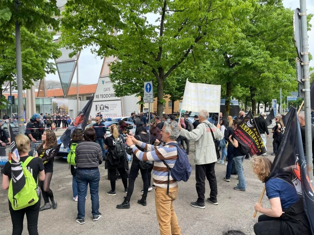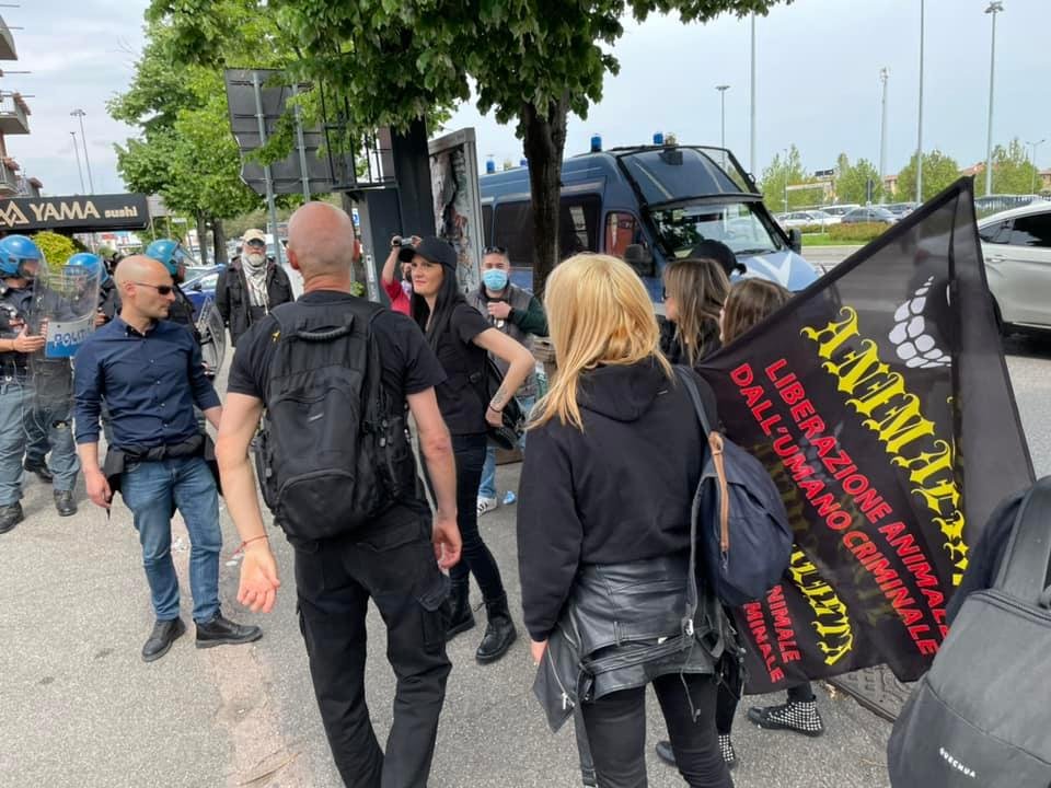 Sul posto sono arrivati numerosi Agenti, tra cui il reparto mobile in assetto antisommossa, il gruppetto di cacciatori si è rifugiato dietro gli scudi dei Celerini. Arrivati davanti alla fiera, i Militanti si sono rifiutati di essere accompagnati all’interno del parcheggio per poter manifestare, a quel punto, viste le tensioni precedenti, è stato concesso di protestare davanti all’ingresso della fiera, blindati dalla Polizia.