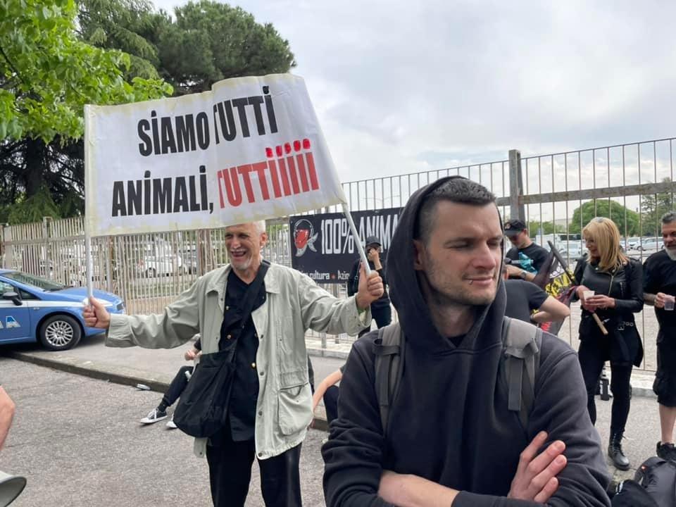 Sabato 30 aprile, Militanti della Sinergia Animalista hanno manifestato davanti alla fiera della caccia e pesca di Verona.