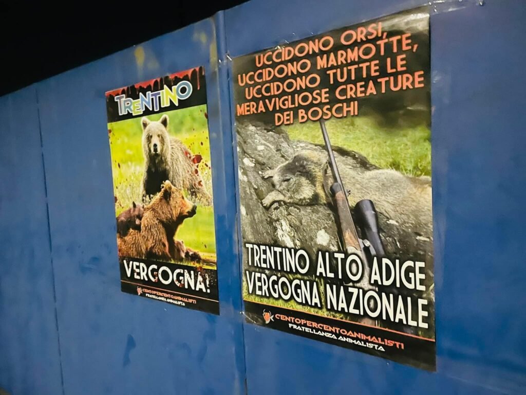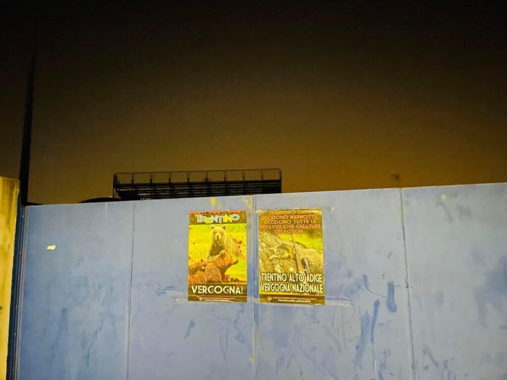 Per ricordare al presidente Fugatti e i suoi collaboratori che non ci siamo dimenticati di loro, nella serata del 12 ottobre, Militanti del Movimento Centopercentoanimalisti, hanno tappezzato con uno striscione e manifesti vs il Trentino, lo stadio “Carlo Speroni” di Busto Arsizio (VA), dove la squadra di calcio del Trento, affronterà domenica 16 ottobre i Tigrotti della gloriosa Pro Patria.