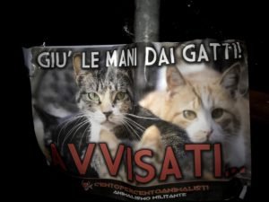 Nella notte tra il 9 e 10 ottobre, Militanti di Centopercentoanimalisti hanno tappezzato la zona dove sono avvenute le sparizioni dei Micioni in via Fossalta a Rustega di Camposampiero, con manifesti di avvertimento e “speranzosi” contro i cacciatori e in difesa dei Gatti. Non sono escluse azioni dei nostri Militanti in loco all’alba, già dal prossimo weekend.