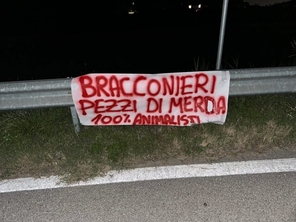 Fumogeni e uno striscione al Cataio di Battaglia Terme (Pd). In nostri Militanti, venerdì 3 ottobre in tarda serata, sono entrati in azione in zona dell’antica reggia dei Colli Euganei, per far capire ai bracconieri (cacciatori che non pagano la licenza) che la misura è colma.