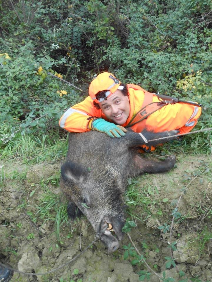 Basta una foto, complimenti vivissimi. Valerio Staffelli di striscia la notizia alla fiera della caccia e pesca, indossa la sacca dei cacciatori di merda e si fa pure fotografare con orgoglio…