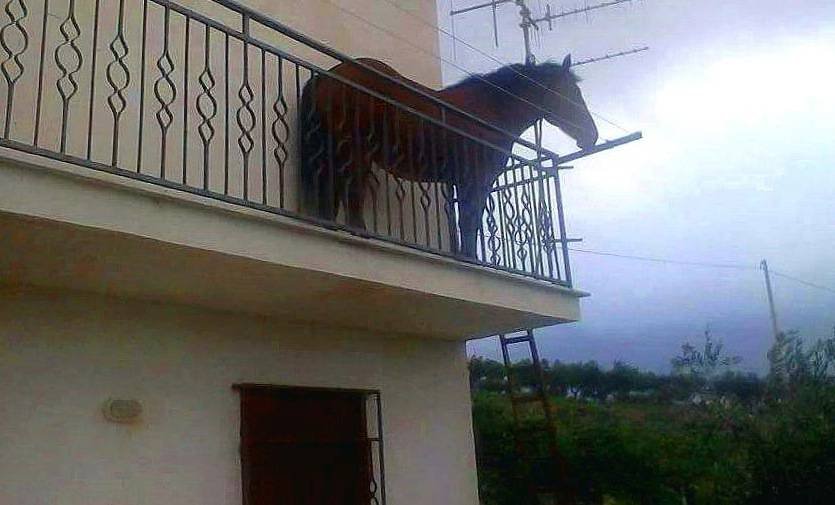 No. Non avete bevuto. Quello che vedete nella foto è proprio un cavallo su un balcone. Accade a Siracusa. Provate a immaginare cosa si è scatenato tra animalisti e non dopo questa foto postata