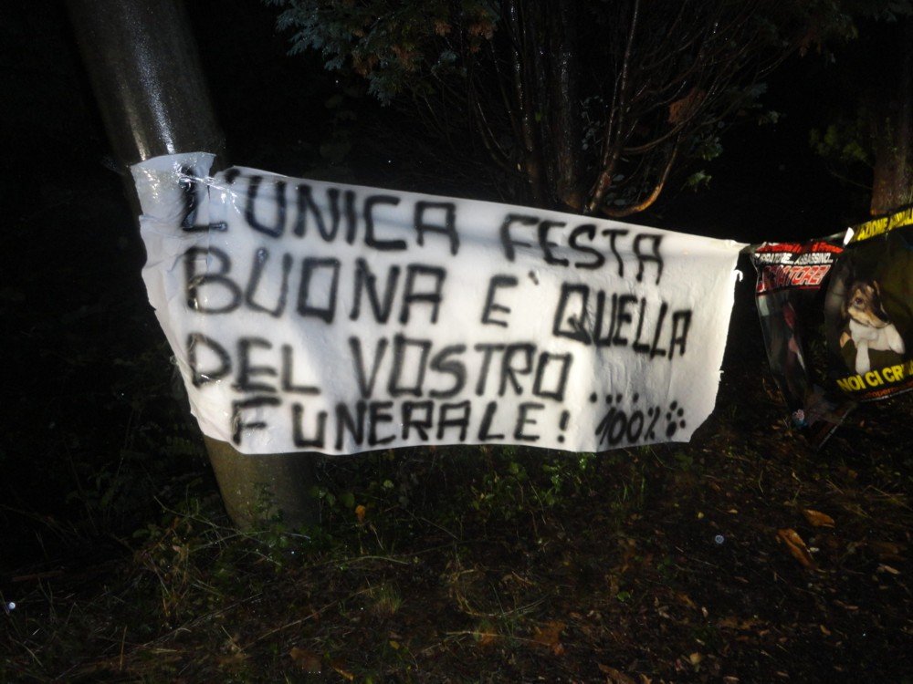 I cacciatori di Castelcucco (Treviso) conoscono bene noi di CENTOPERCENTONIMALISTI: nel luglio del 2011 i nostri militanti hanno assediato per oltre due ore una masnada di loro, convenuti per partecipare a una “cena sociale”. Rimasero