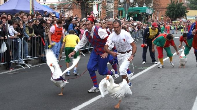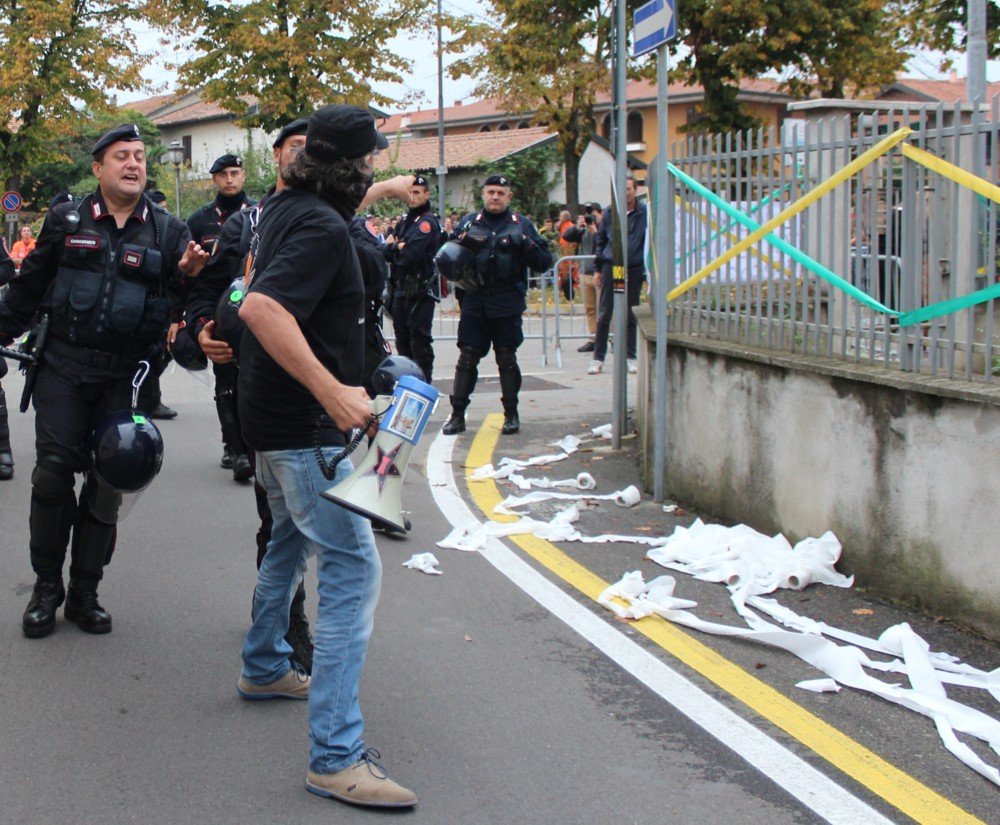 Domenica 12 ottobre militanti di CENTOPERCENTOANIMALISTI hanno tenuto un presidio a Lacchiarella (Milano) dove i bifolchi locali organizzano ogni anno un “Palio delle Oche”: Oche costrette a correre a bacchettate tra le grida degli