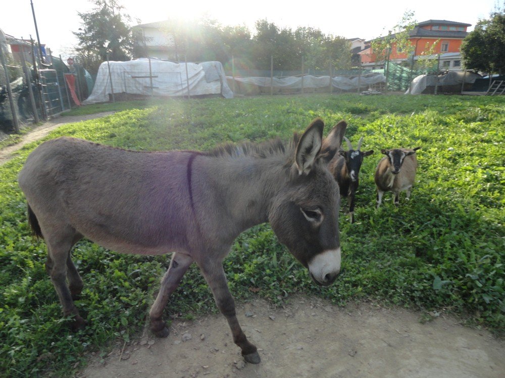 Vigodarzere (Padova): il signor Matteo in un terreno di sua proprietà tiene, libere, alcune Caprette e un Asinello salvate dal macello. Lo fa senza scopo di lucro, anzi a sue spese, e solo per