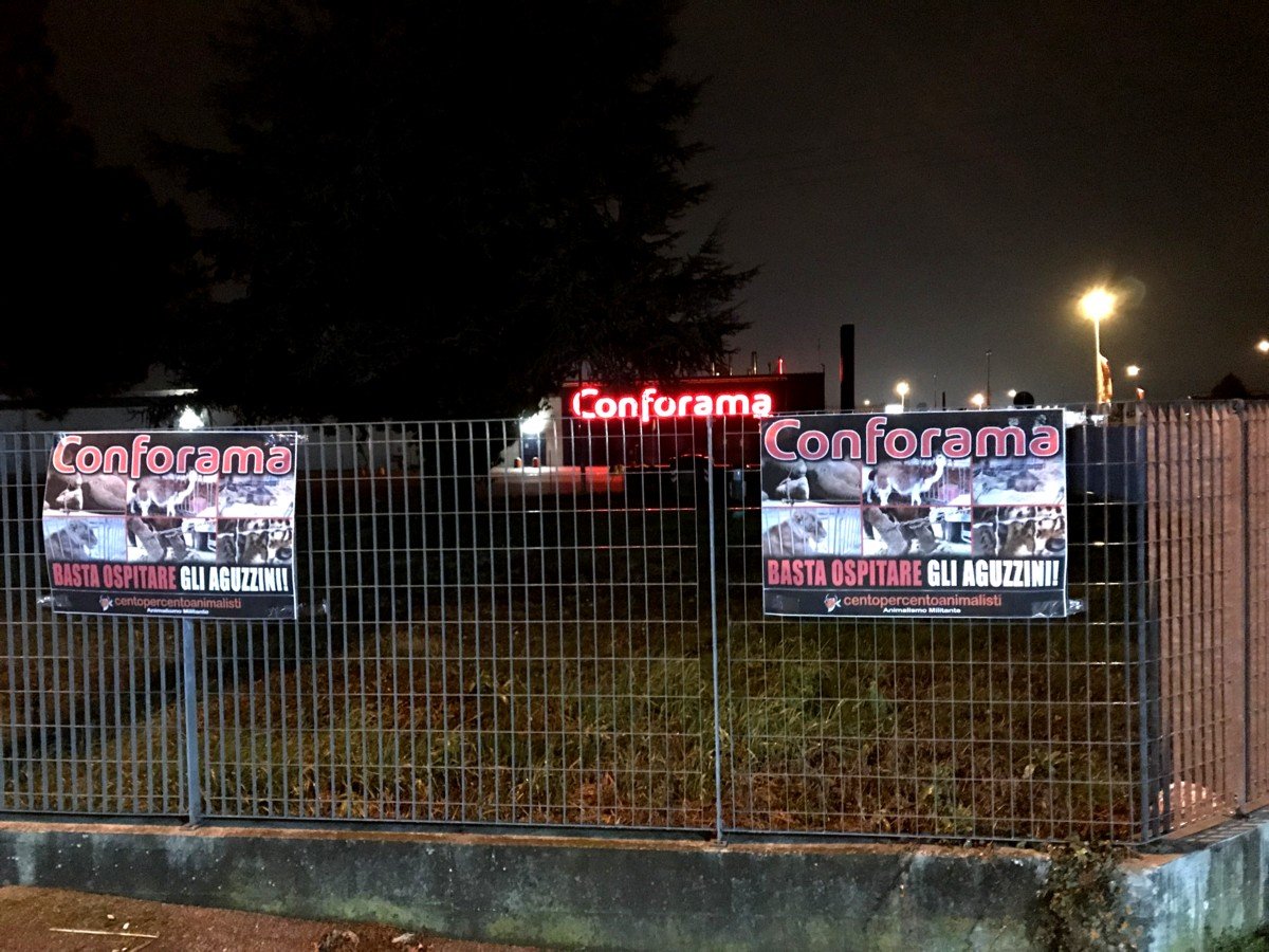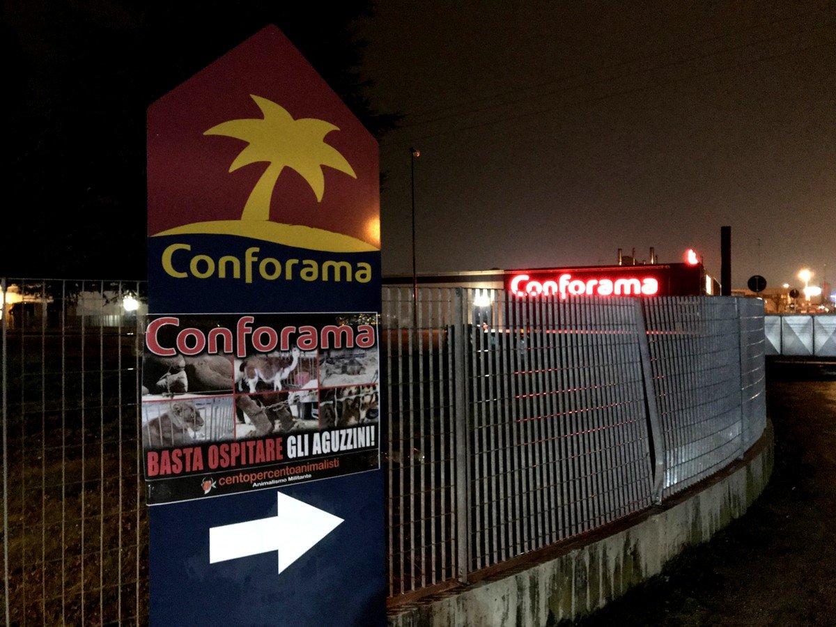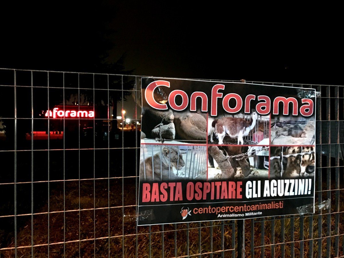 Per far capire ai responsabili di Conforama che la nostra protesta non cesserà, Militanti del Movimento Centopercentoanimalisti, nella notte tra il 6 e 7 febbraio, hanno affisso sulle recinzioni di Conforama a Mestrino, manifesti contro l’azienda chiari e cristallini.