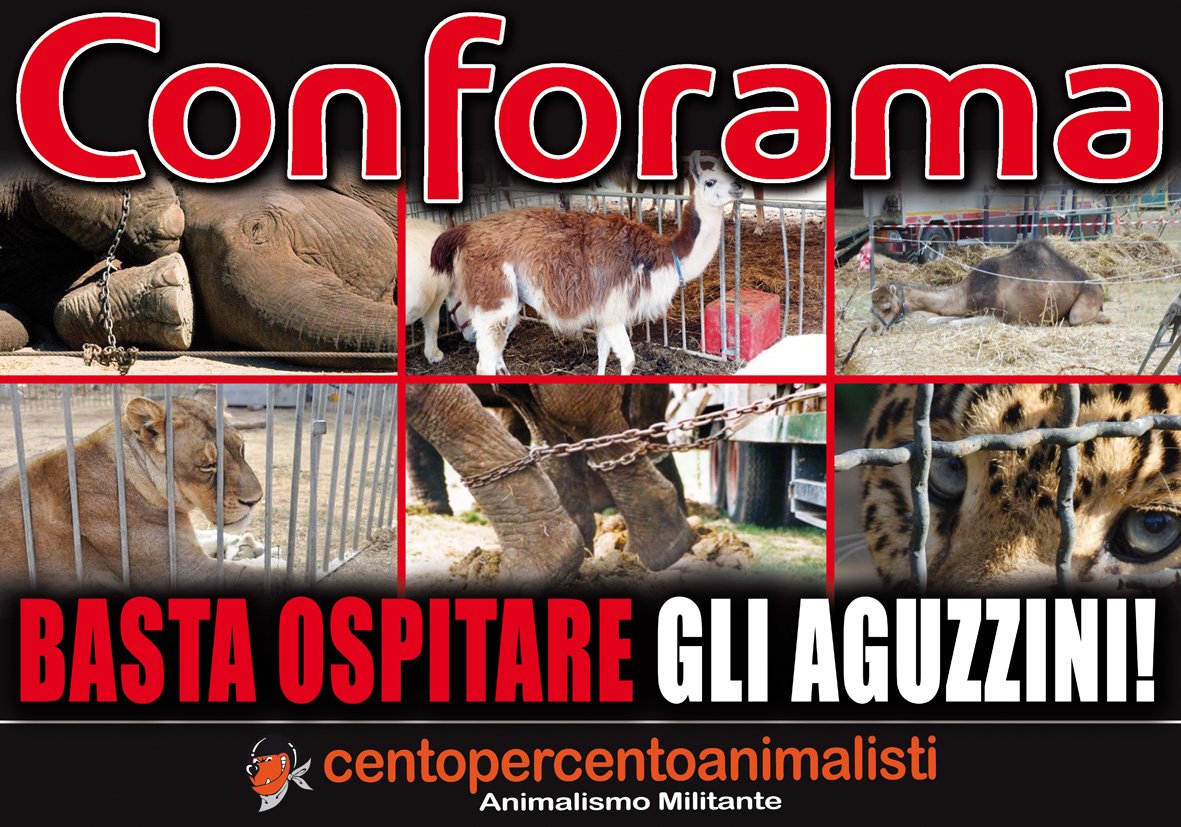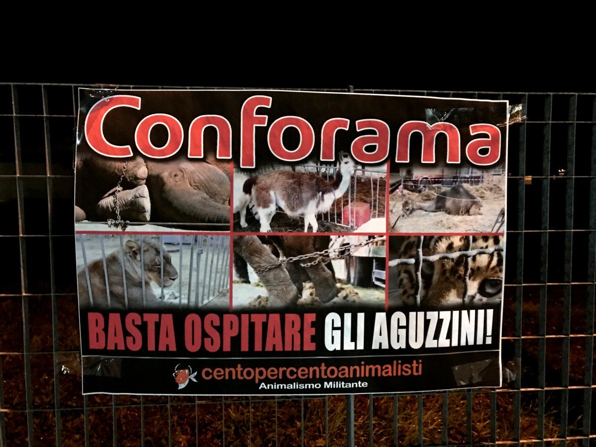 Conforama supporta il circo con Animali – blitz dei nostri Militanti a Mestrino (Padova).