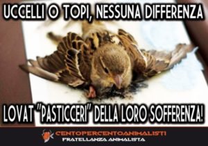 Ghedina, per giustificarsi, ha detto che le trappole erano per i Topi (volanti?). Questo non cambierebbe niente: nessun Animale deve venir ucciso, e in modo così barbaro. La pasticceria Lovat, già nota per i prezzi esagerati, merita solo di venir ignorata da ogni persona che abbia coscienza.