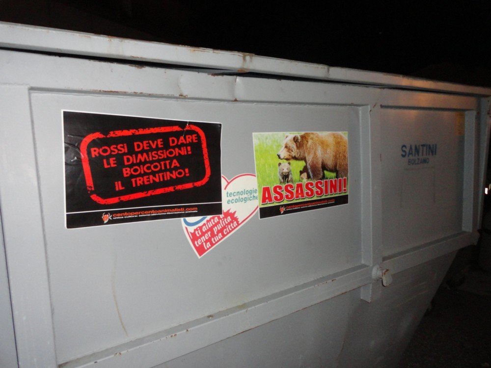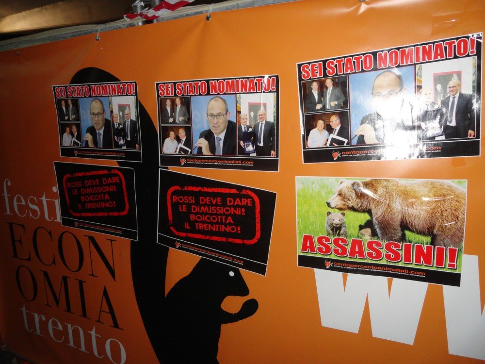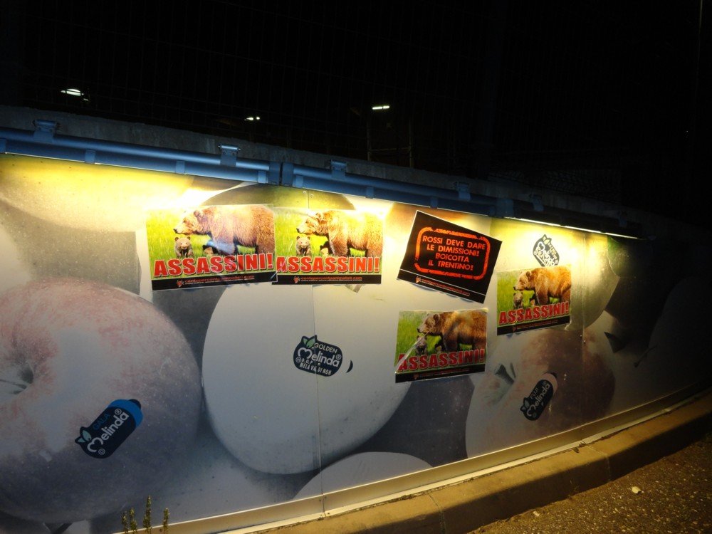Nella notte tra il 22 e 23 settembre, militanti di Centopercentoanimalisti hanno inaugurato il boicottaggio del Trentino affiggendo centinaia di locandine adesive personalizzate con le immagini di Ugo Rossi, il fungaiolo, il sindaco di Pinzolo, Daniza insieme ai suoi cuccioli e una di boicottaggio.