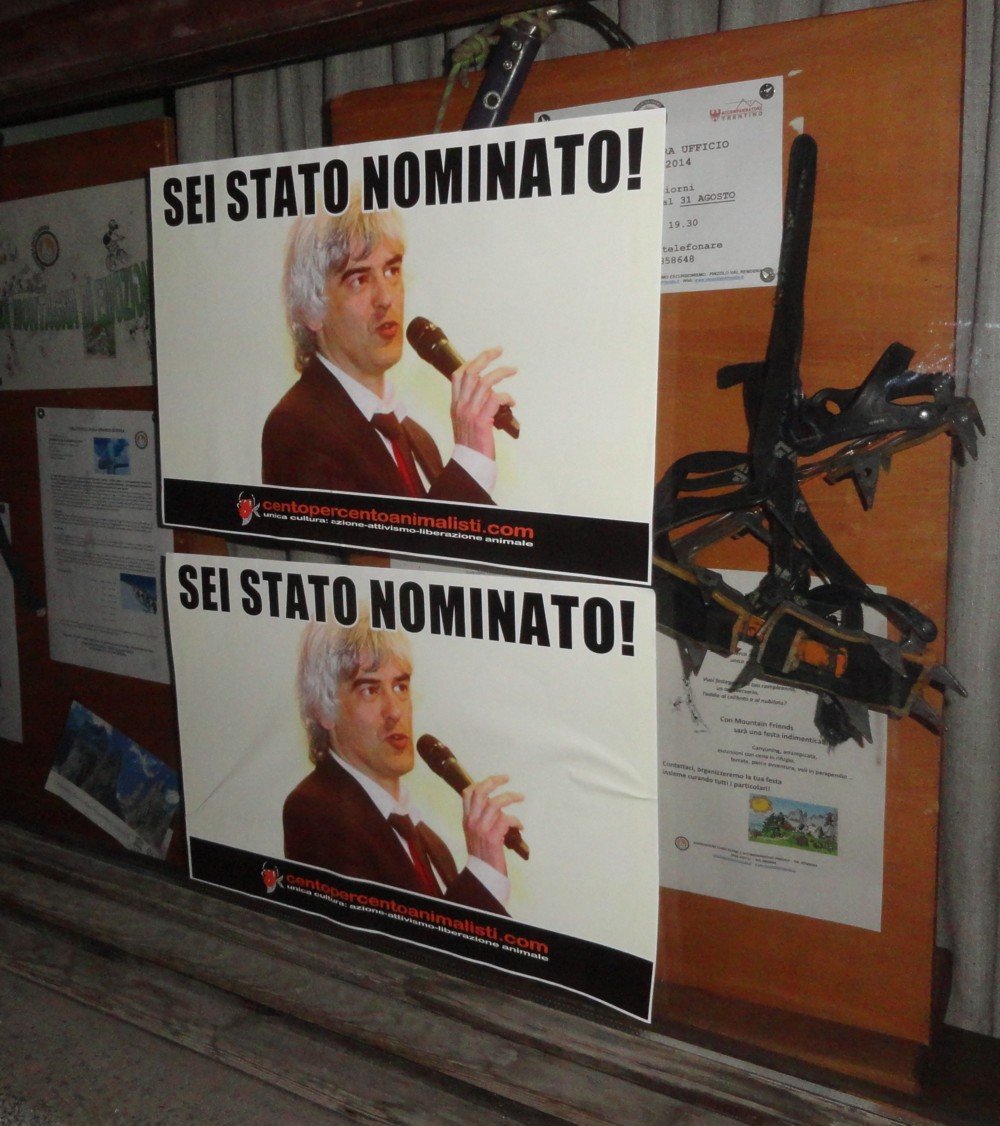 Centopercentoanimalisti da questa notte, dopo aver fatto sfogare per settimane gli animalisti inventati dell’ultima ora, ha ufficialmente dichiarato “vita dura” ai responsabili della fine di Daniza e relativa condanna a morte o schiavitù dei suoi cuccioli. Le nostre azioni di “disturbo” continueranno.