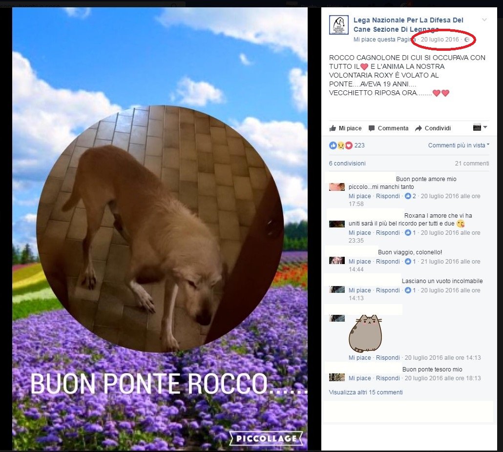 Chi è il cane della foto? Si chiama Rocco, anzi, si chiamava, dato che Rocco è morto nel luglio scorso. Era di proprietà di un cacciatore che lo aveva abbandonato dopo averlo ferito alla zampa (l’avete osservata bene?).  Emma lo ha prima accolto e dopo ceduto 3 (TRE) anni fa ai volontari alla Lega del Cane che l’hanno amato fino alla fine dei suoi giorni. Ma antonio colonna l’ha fatto resuscitare a quanto pare. Vergogna! Vergogna! Vergogna!