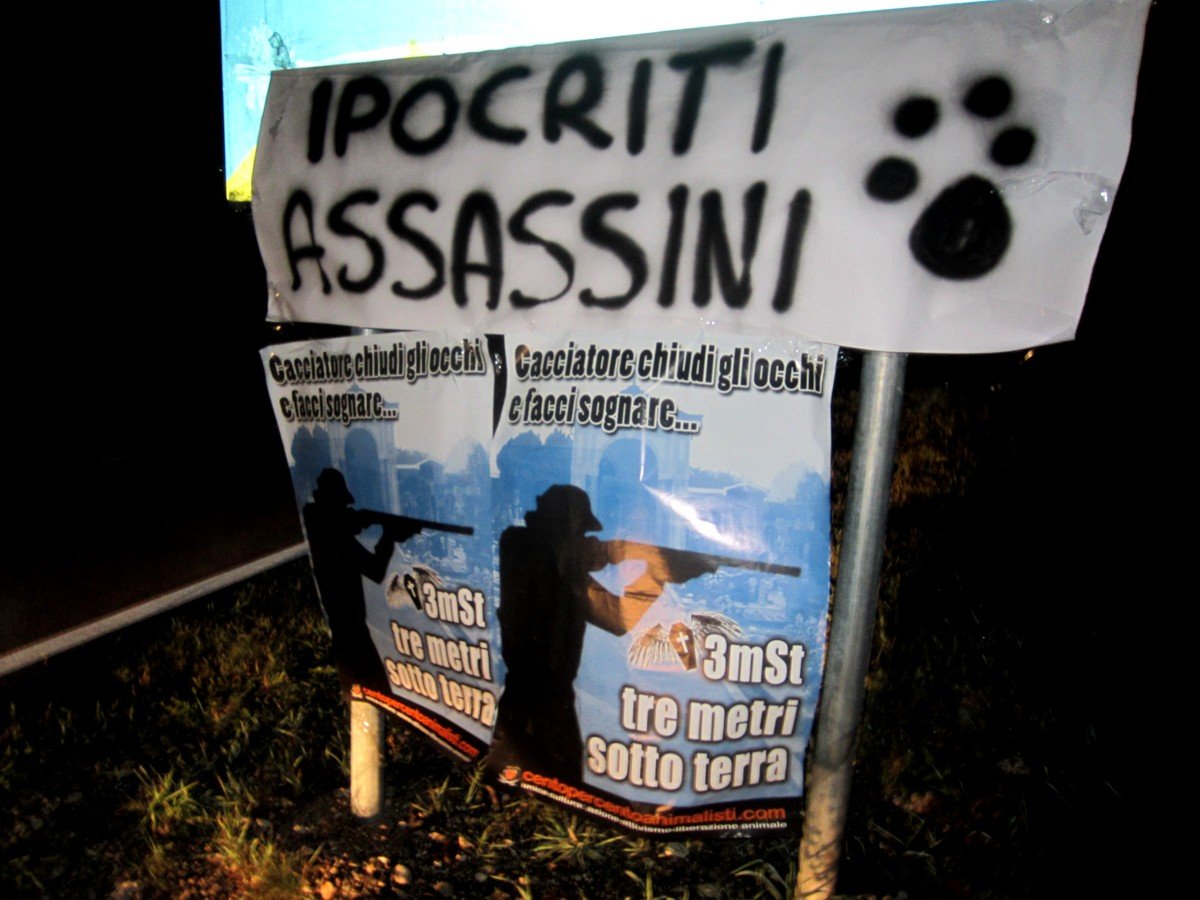 Nella notte tra il 13 e 14 settembre, per non far passare in silenzio l’ennesimo scempio Trentino, Militanti di CENTOPERCENTOANIMALISTI hanno affisso striscioni e manifesti contro la caccia in alcune zone di “confine” del Trentino…