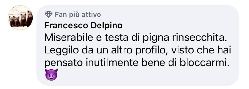 Se a qualcuno di voi hackerano il profilo, cosa fate? Ne aprite uno nuovo, giusto? Allora chiedetevi come mai la mammina truffatrice di Enrico Rizzi non ha messo il suo vero nome nel nuovo profilo, paura che qualcuno la rintracci? Lo sapete perché Enrico Rizzi odia OIPA? La sua cara mammina in passato era delegata di quell’associazione, secondo voi perché l’hanno cacciata a calci in culo?