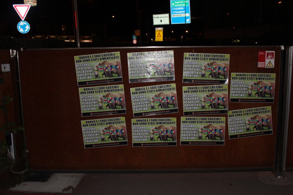 expo 2015 tappezzata la sede di Pero (MI) – nessuno spazio agli assassini di Daniza