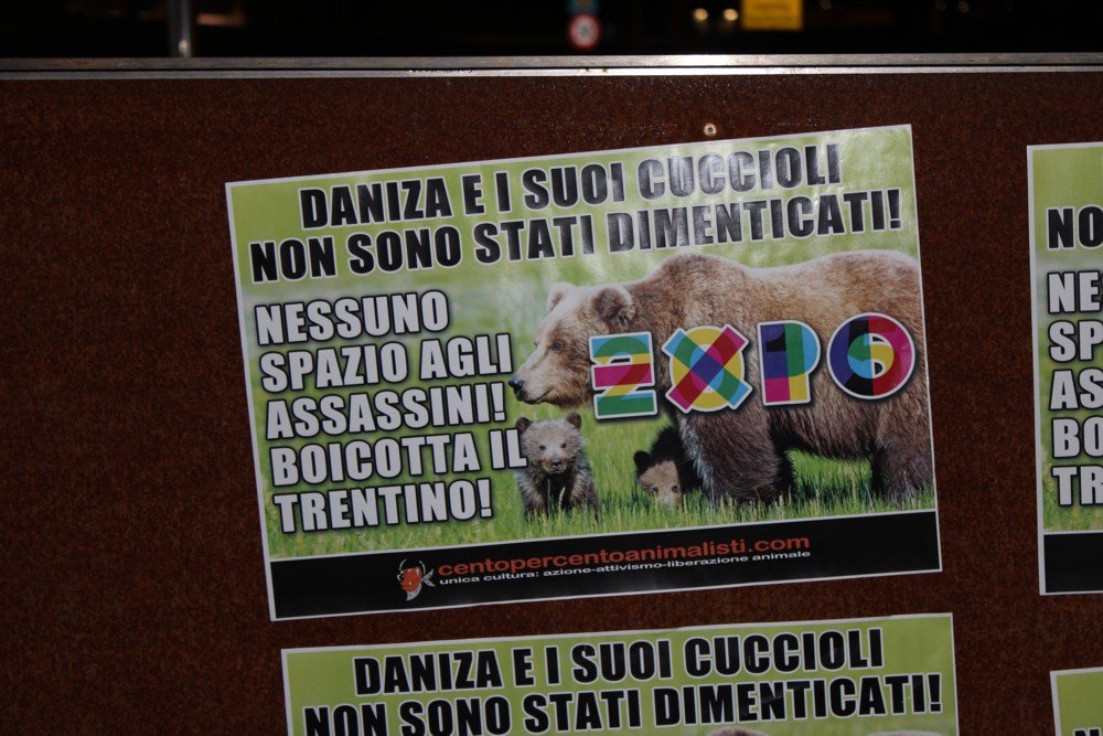 Sappiano i responsabili, in primis il presidente della Regione, che il ricordo di Daniza e del male che le è stato fatto resterà vivo per molto tempo. Noi rinnoviamo l’invito a boicottare il Trentino e i suoi prodotti. E non mancheremo di far visita al padiglione della regione, per onorare la memoria di Daniza e dei suoi figli.