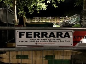 Si avvicina la data del palio di Ferrara, nel quale, nel corso di una improbabile rievocazione storica , i Cavalli vengono fatti correre in una piazza con curve strette. Infatti nella riedizione del 2006 (il palio era stato sospeso per decenni) due Cavalli, Blasco e Bao Nero, sono rimasti uccisi per l’incompetenza e la incoscienza degli organizzatori.