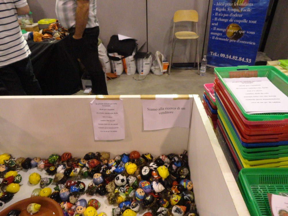 fiera di Padova – stand scandaloso – Paguri in vendita (!) come giocattoli – domenica 18 maggio invadiamo la fiera!