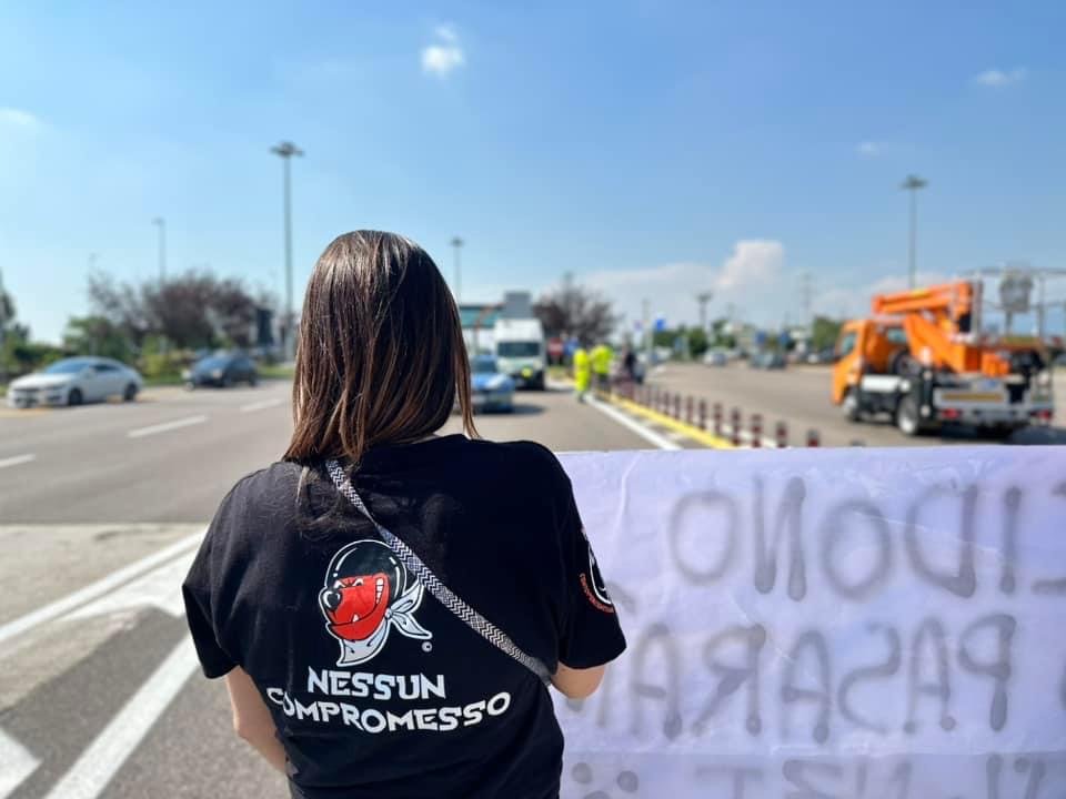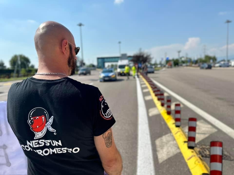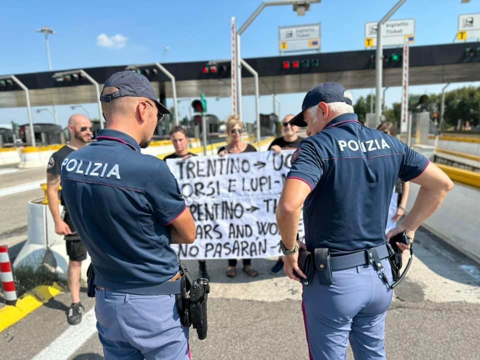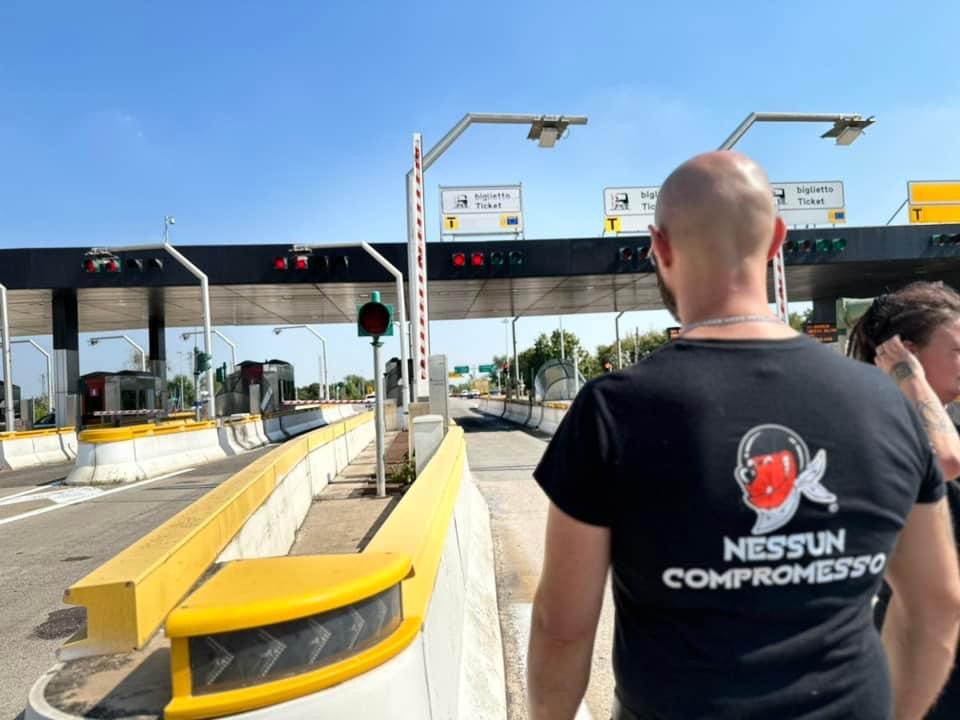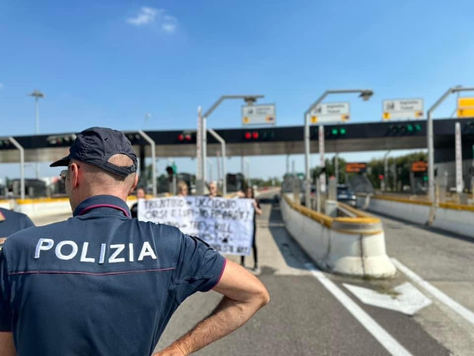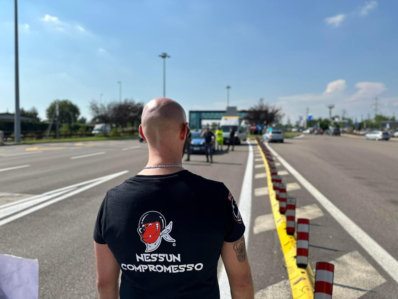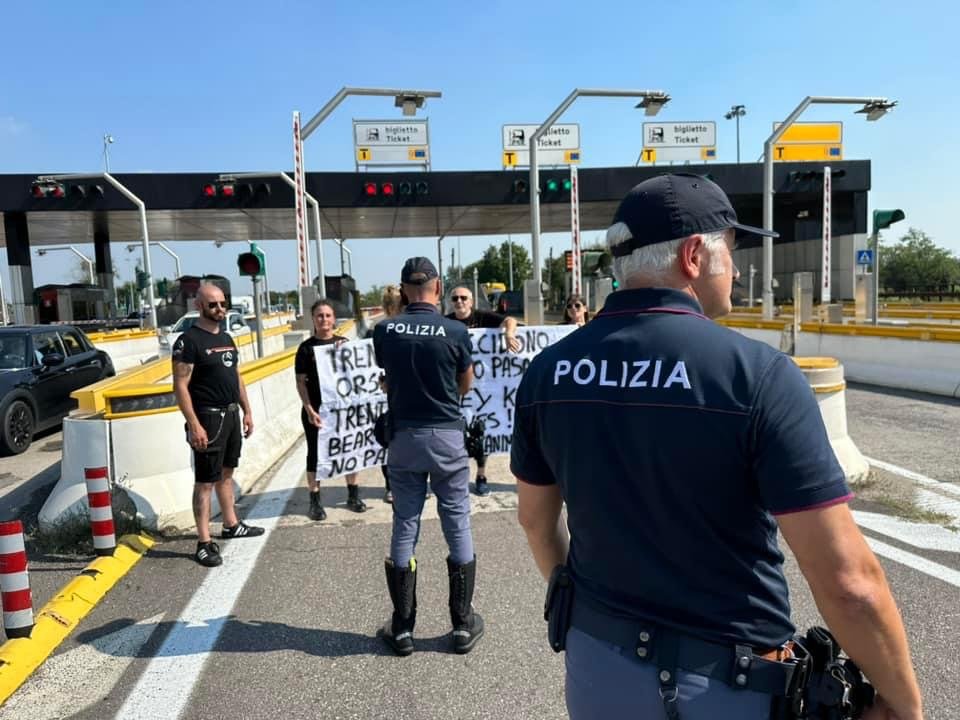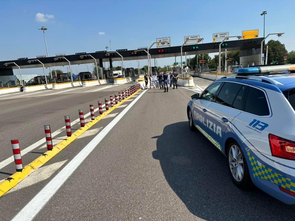 BLOCCO CASELLO DI VERONA NORD. I Militanti hanno bloccato una delle entrate del casello dell’autostrada del Brennero, l’azione è durata 40 minuti abbondanti, non sono stati creati grossi problemi alla circolazione. Molti automobilisti hanno espresso solidarietà alla protesta (alcuni si notano nel video). Le FdO hanno identificato gli Attivisti, una scena molto bella, la potrete notare nel video.