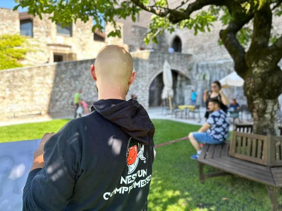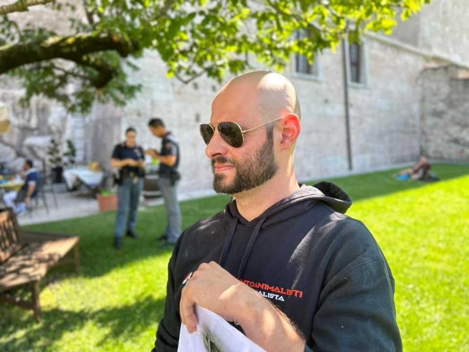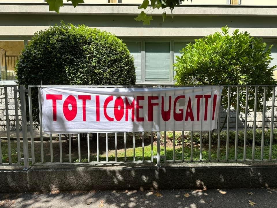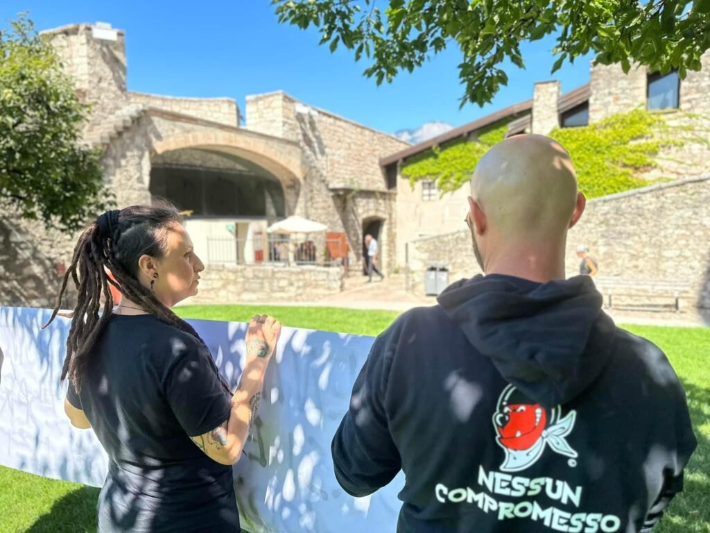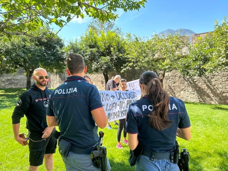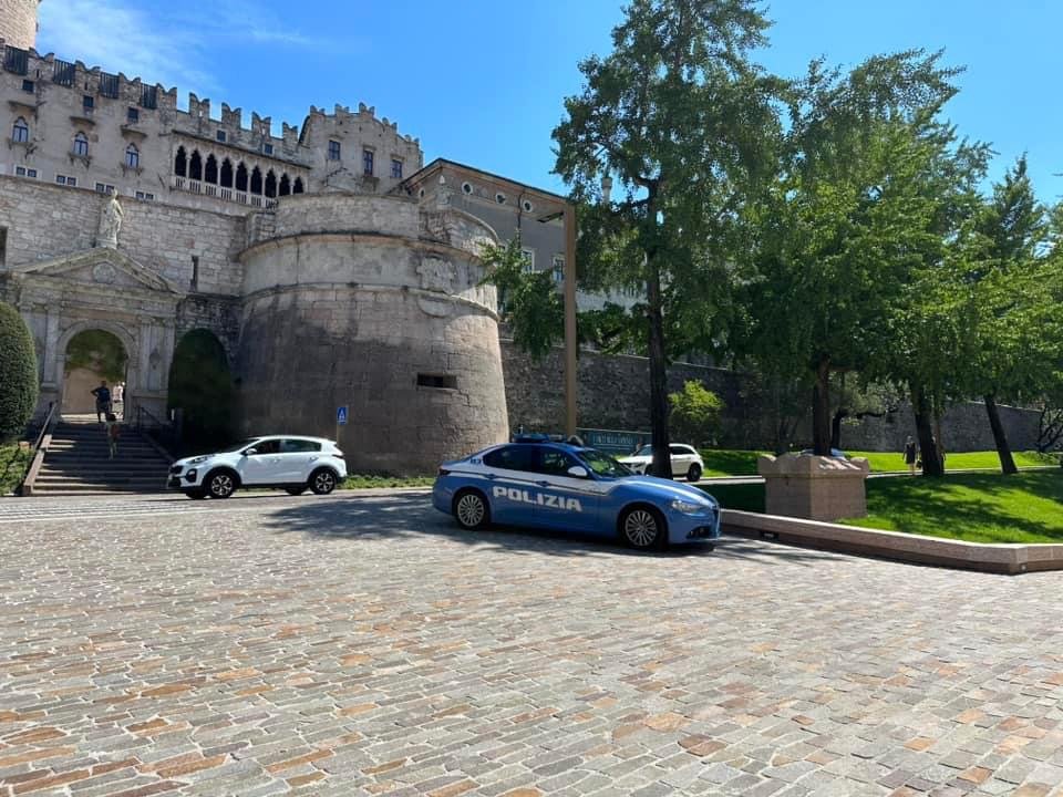 CASTELLO DEL BUONCONSIGLIO (TRENTO). I turisti, pochi ed un buon segno, in visita al castello, hanno assistito ed immortalato con delle foto il blitz approvando la protesta. I dipendenti della struttura hanno chiamato le FdO che una volta arrivati, hanno identificato i Militanti. Da segnalare un fatto spiacevole, tanto per confermare la mentalità dei sudditi di Fugatti: è stato vietato l’ingresso ad un Cane (lo trovate nel video) perché di grossa taglia. I Militanti hanno attaccato successivamente uno striscione (riciclato da Genova) sui cancelli della sede provincia autonoma di Trento